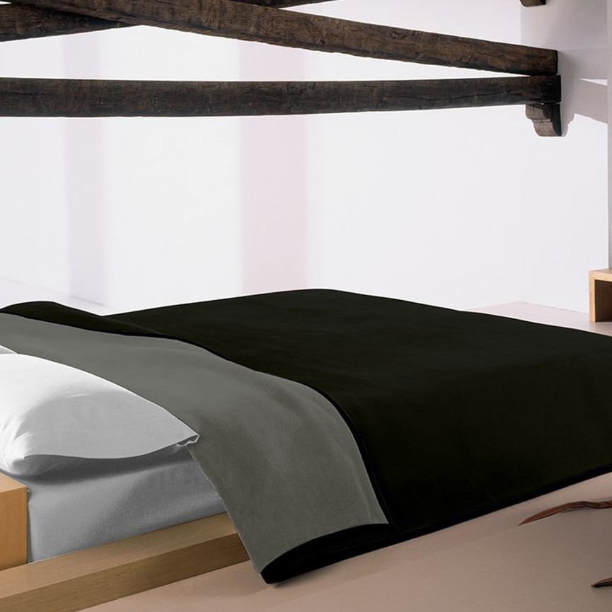 Manta lisa, de telar, bicolor (cada una de las caras tiene un tono de color) con el sello de garantia Made In Green.
