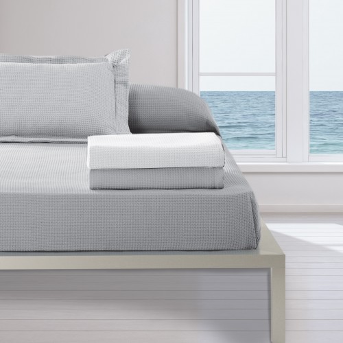 Manta muy fina 100% algodón, con dibujo en forma de cuadrados bordados del mismo tono de color.