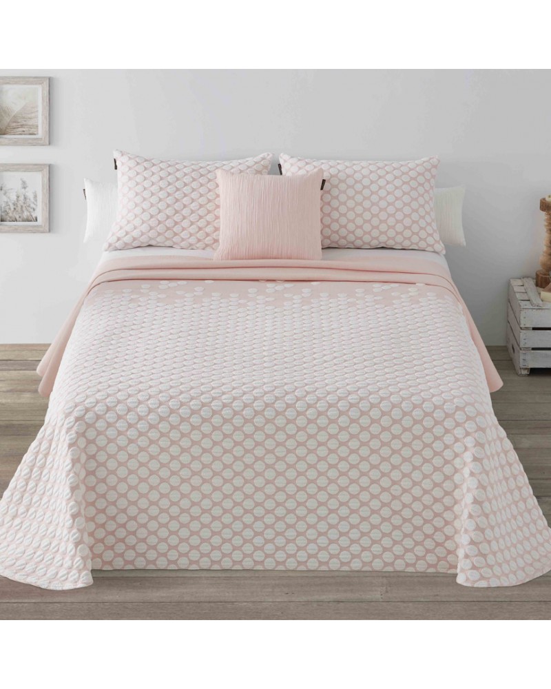 Cubrecama tejido en telares jacquard con lunares que sobresalen del tejido en tacto rizo.