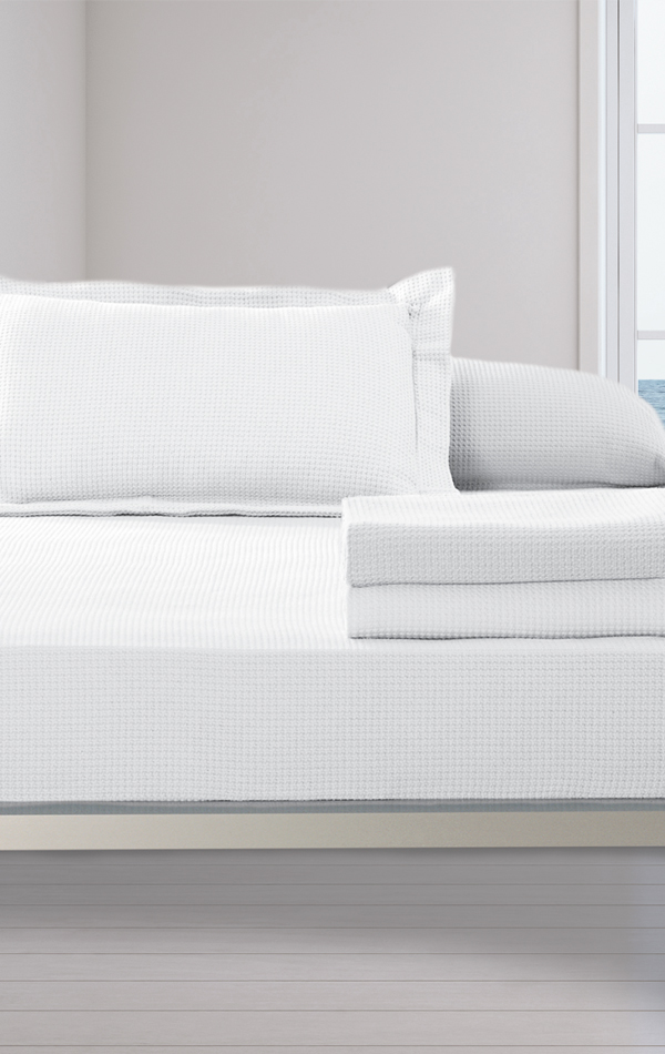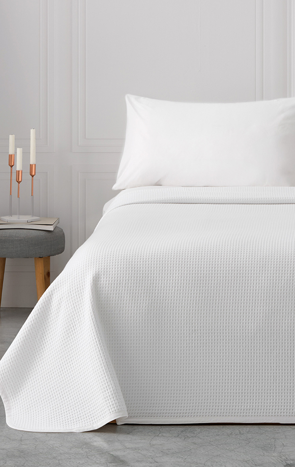 Cubrecama, 100% algodón, de color liso y dibujo en forma de cuadricula.