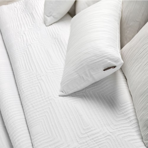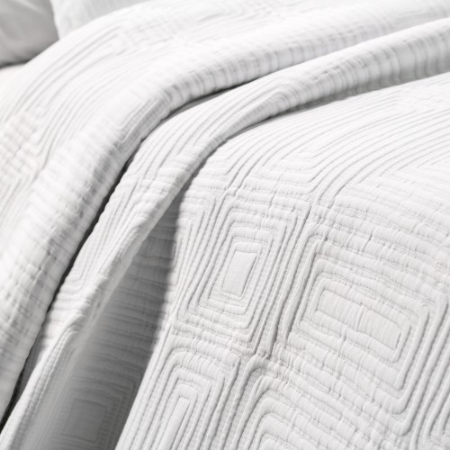 Colcha cubrecama jacquard dibujo geométrico cuadrados blanco - Etnia
