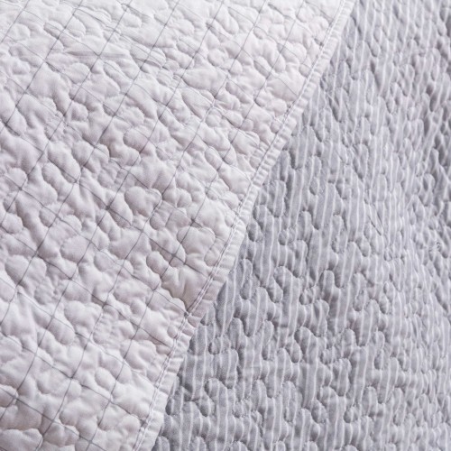 Colcha bouti reversible estampado rayas diagonales y cuadros gris