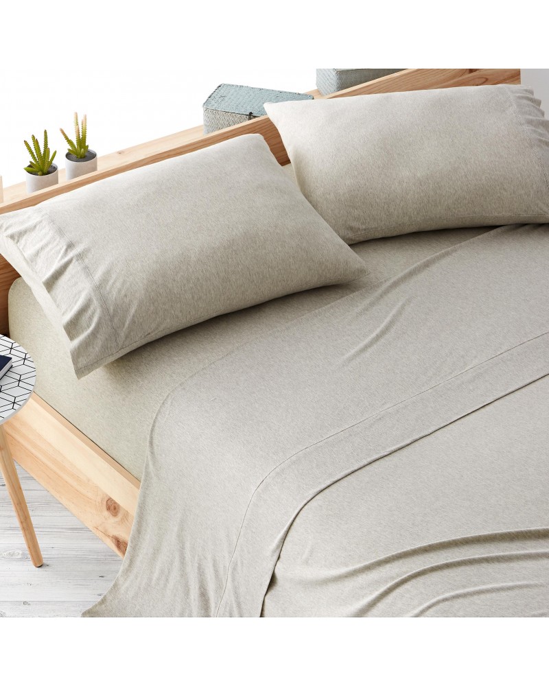 Juego sabanas algodón tejido jersey beige