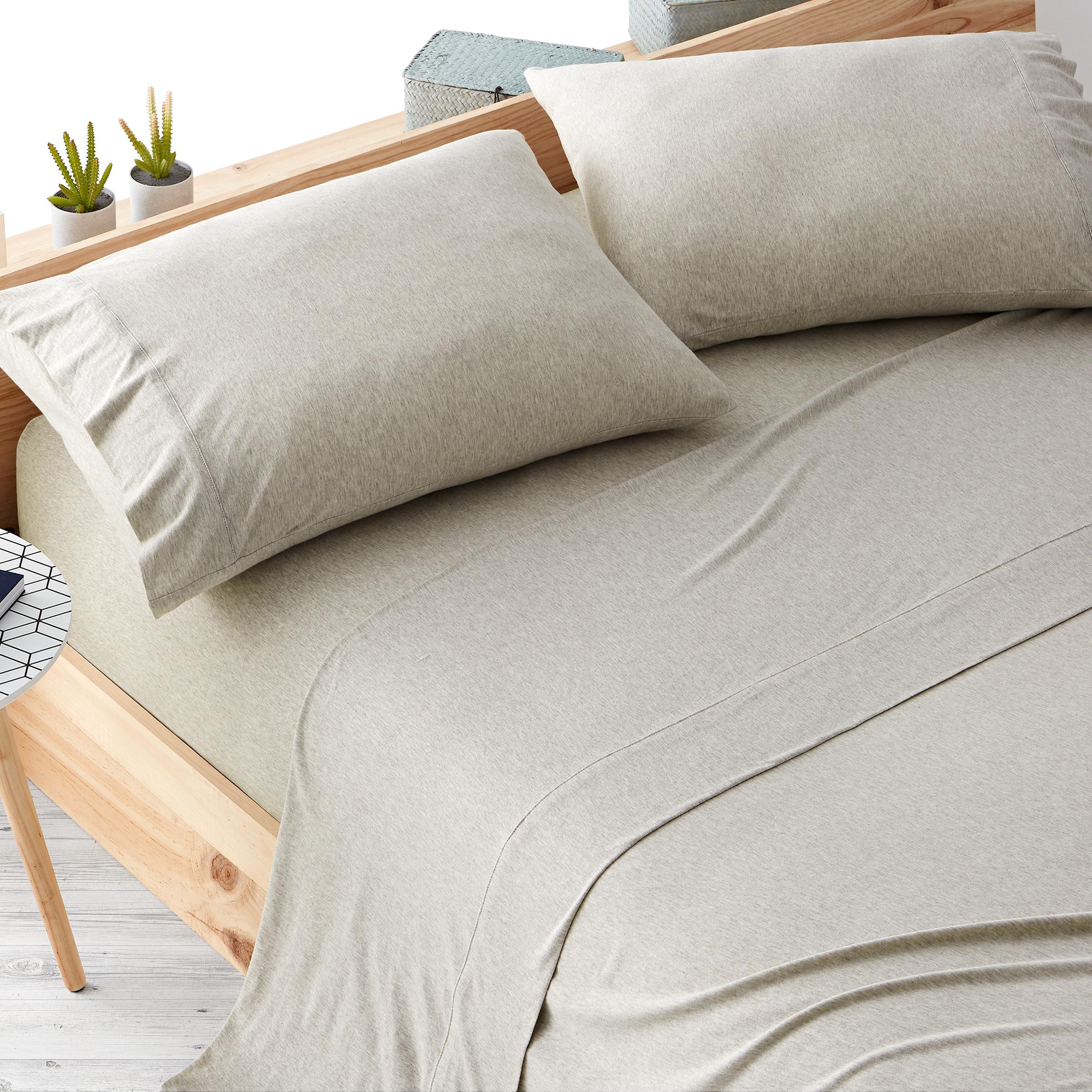 Juego de sábanas de la misma calidad que tus camisetas de algodón. El tejido es agradable, suave, transpirable y absorbente de la humedad y lo mejor es que no se tienen que planchar.