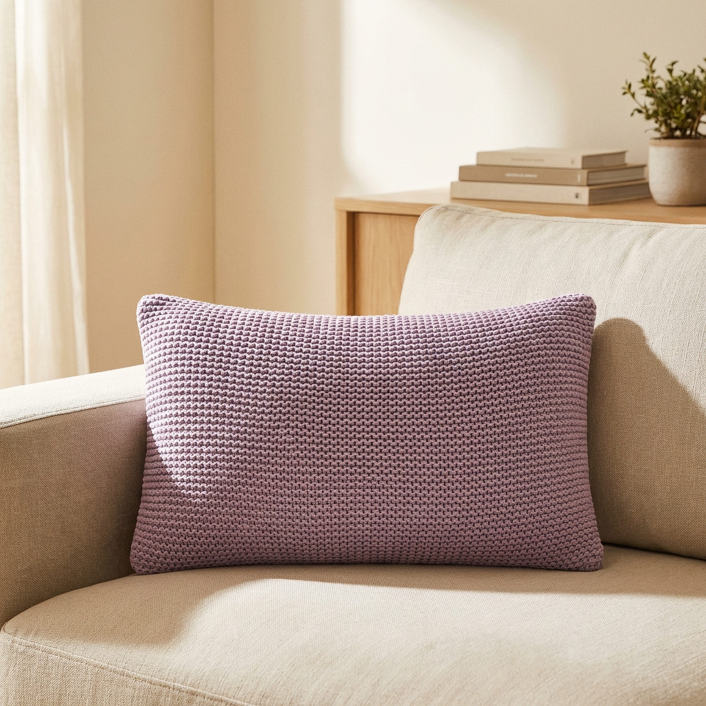 Cojín con una cara de tejido de punto y la otra lisa