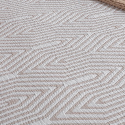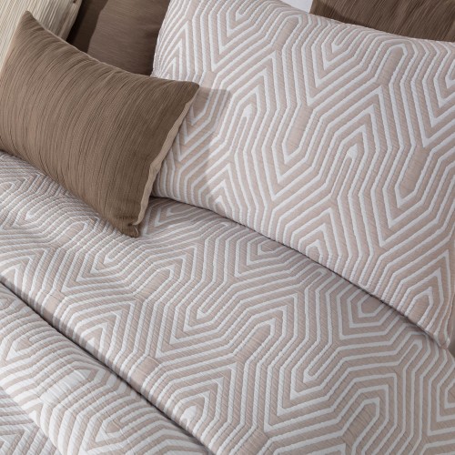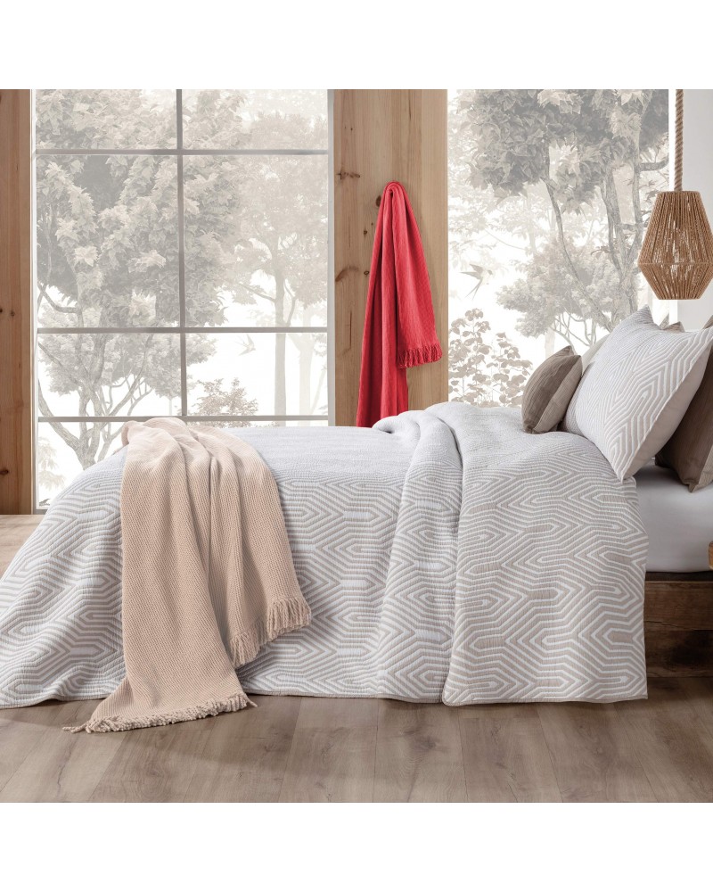 Colcha cubrecama jacquard reversible con cojines geométrico beige - Maltes