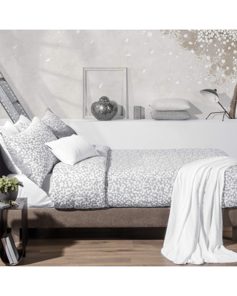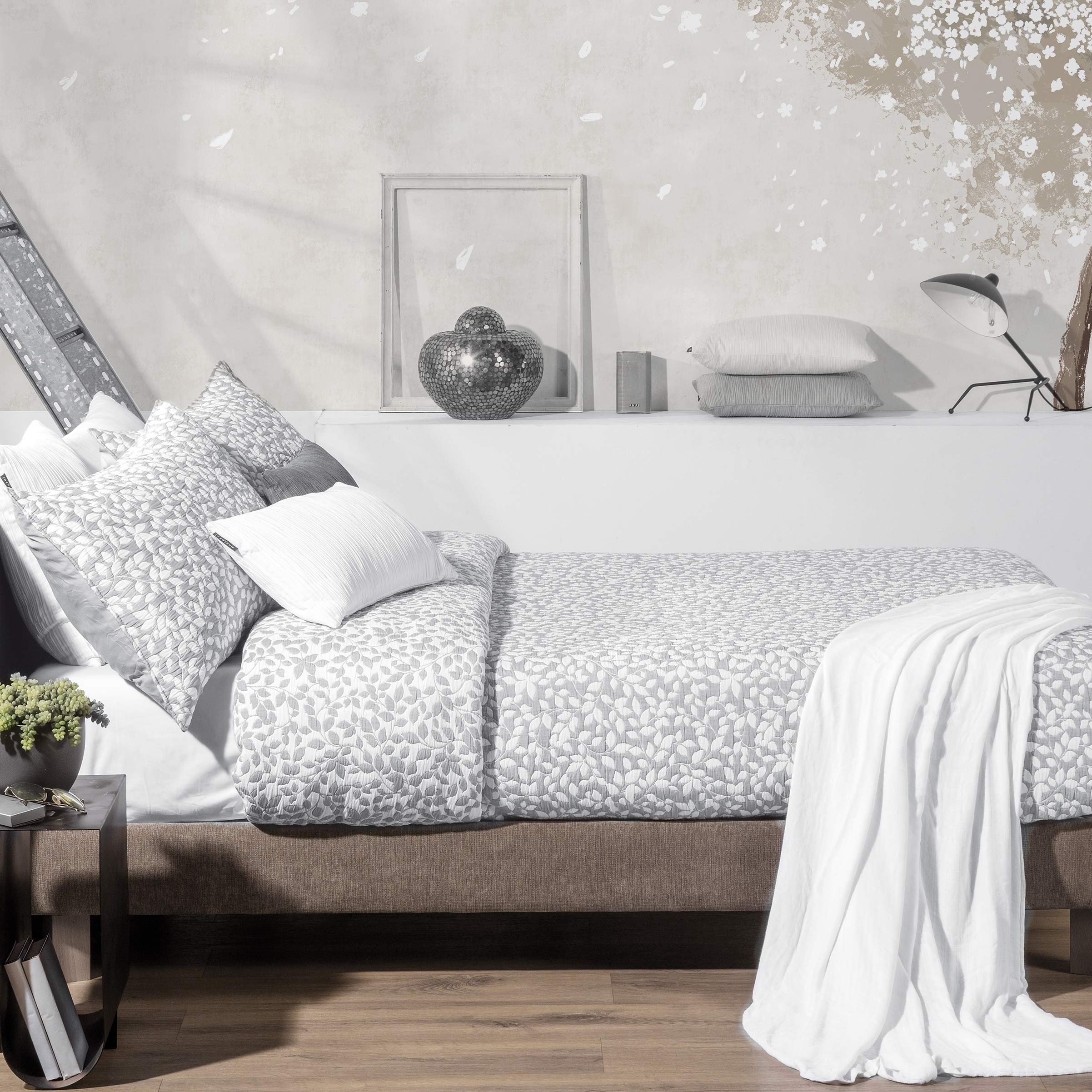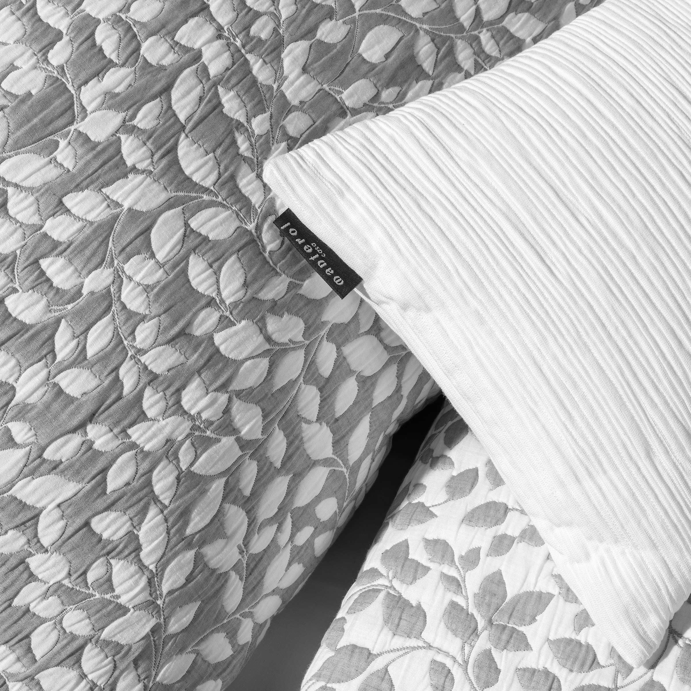 Colcha cubrecama jacquard reversible con cojines hojas gris - Maltes