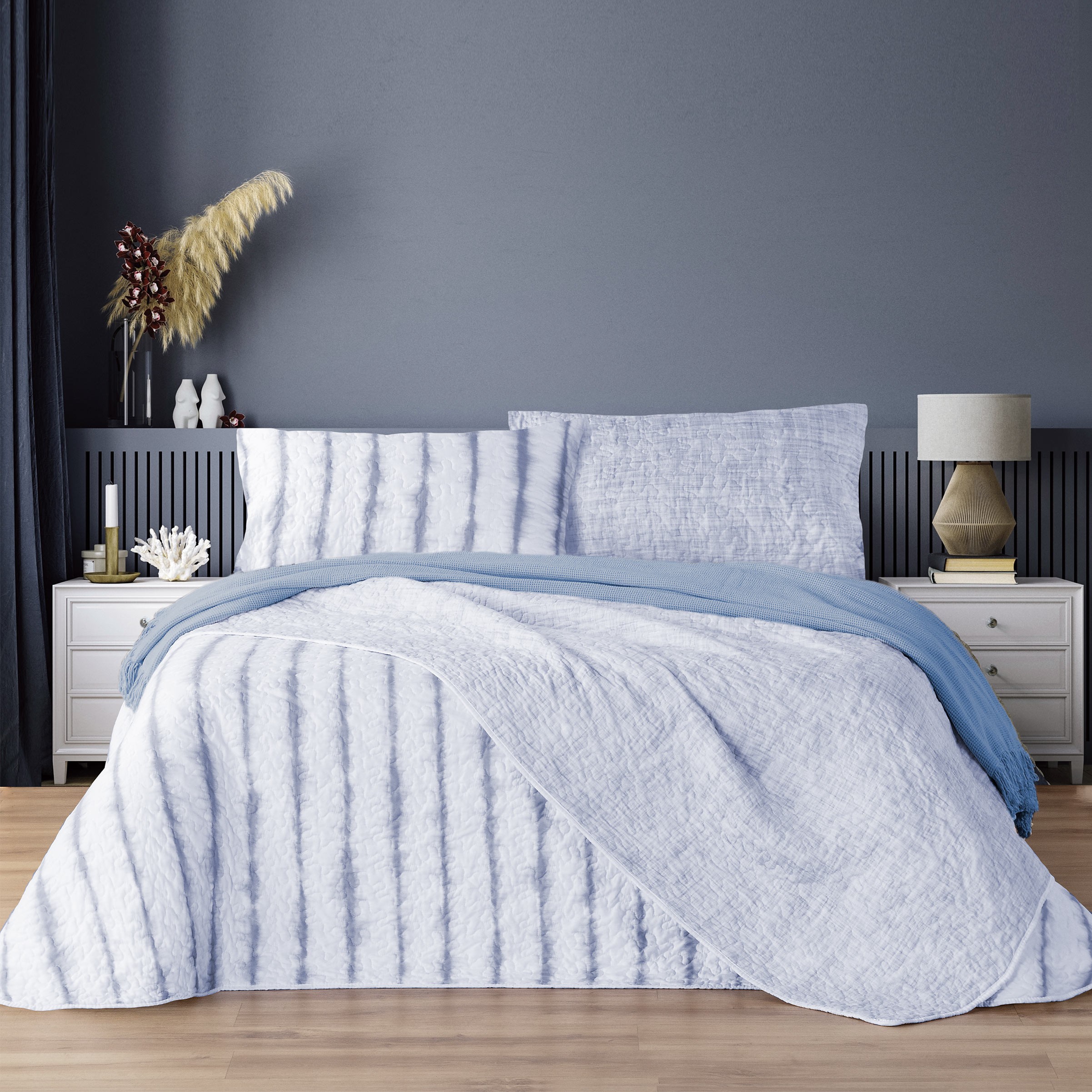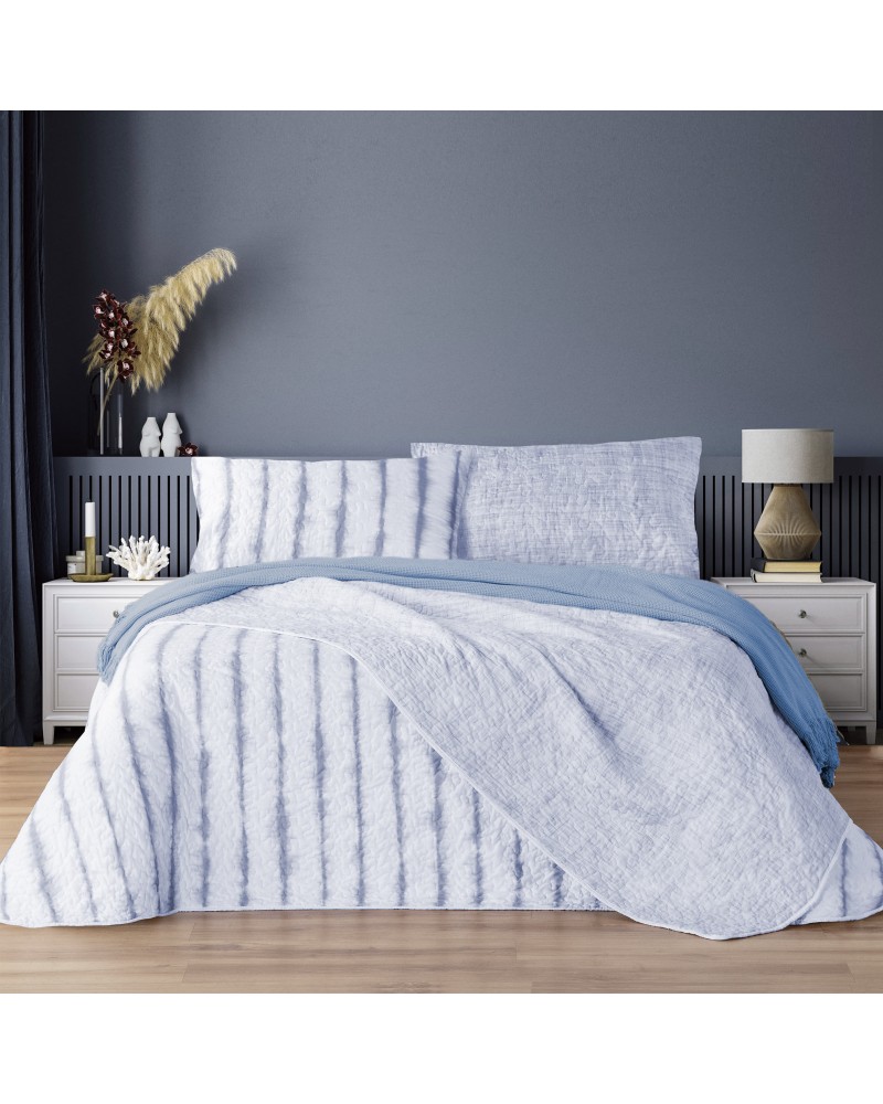 Colcha bouti reversible estampado rayas y jaspeado azul - Summer