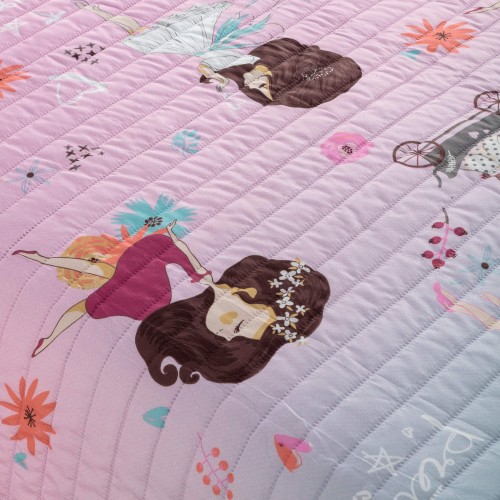 El bouti infantil presenta un diseño encantador y divertido, con dibujos animados de bailarinas sobre un fondo ocupado con dibujos de dulces y corazones. Este diseño colorido y alegre añade un toque de diversión y fantasía al dormitorio de los más pequeños, mientras que el tejido suave y confortable proporciona calidez y comodidad para una noche de sueño tranquilo y reparador. Ideal para crear un ambiente acogedor y estimulante para los niños mientras decoran su espacio con un toque de imaginación.
