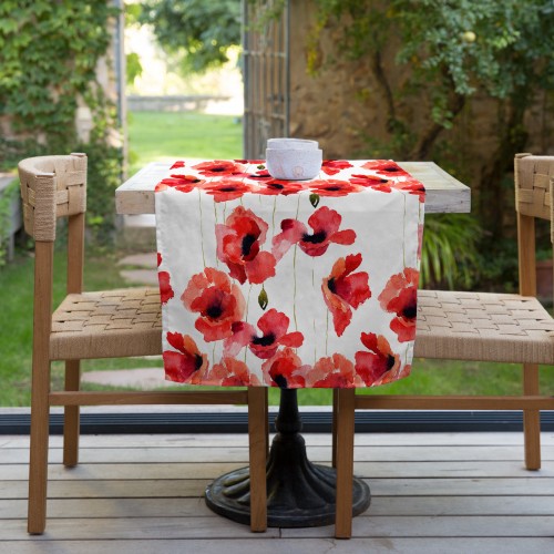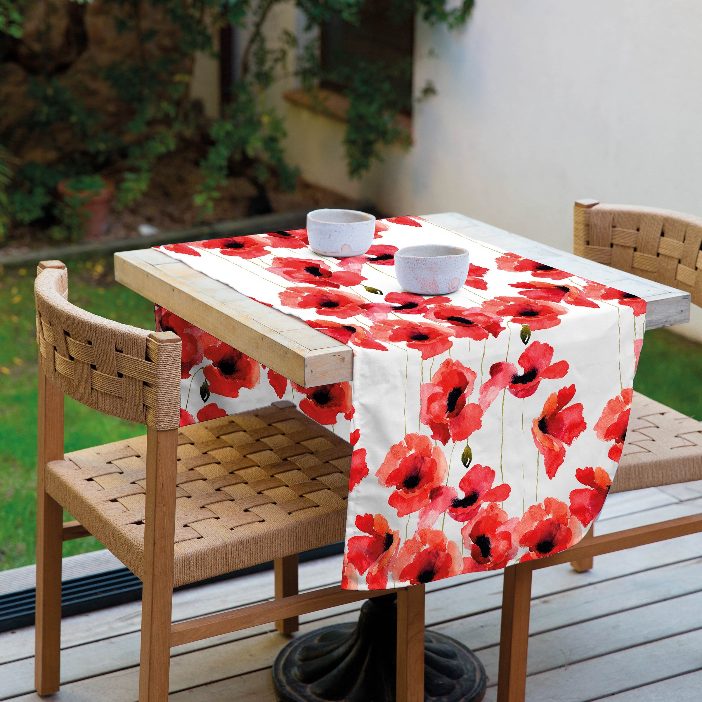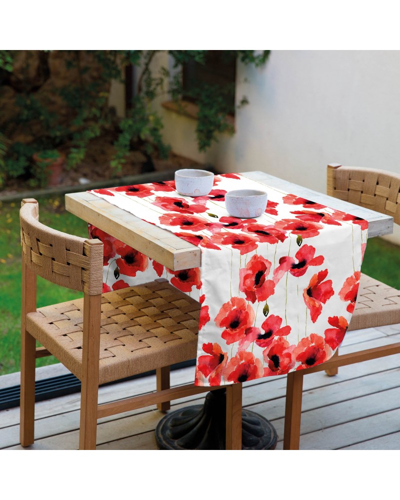 Camino de mesa estampado amapolas con acabado anti-manchas.