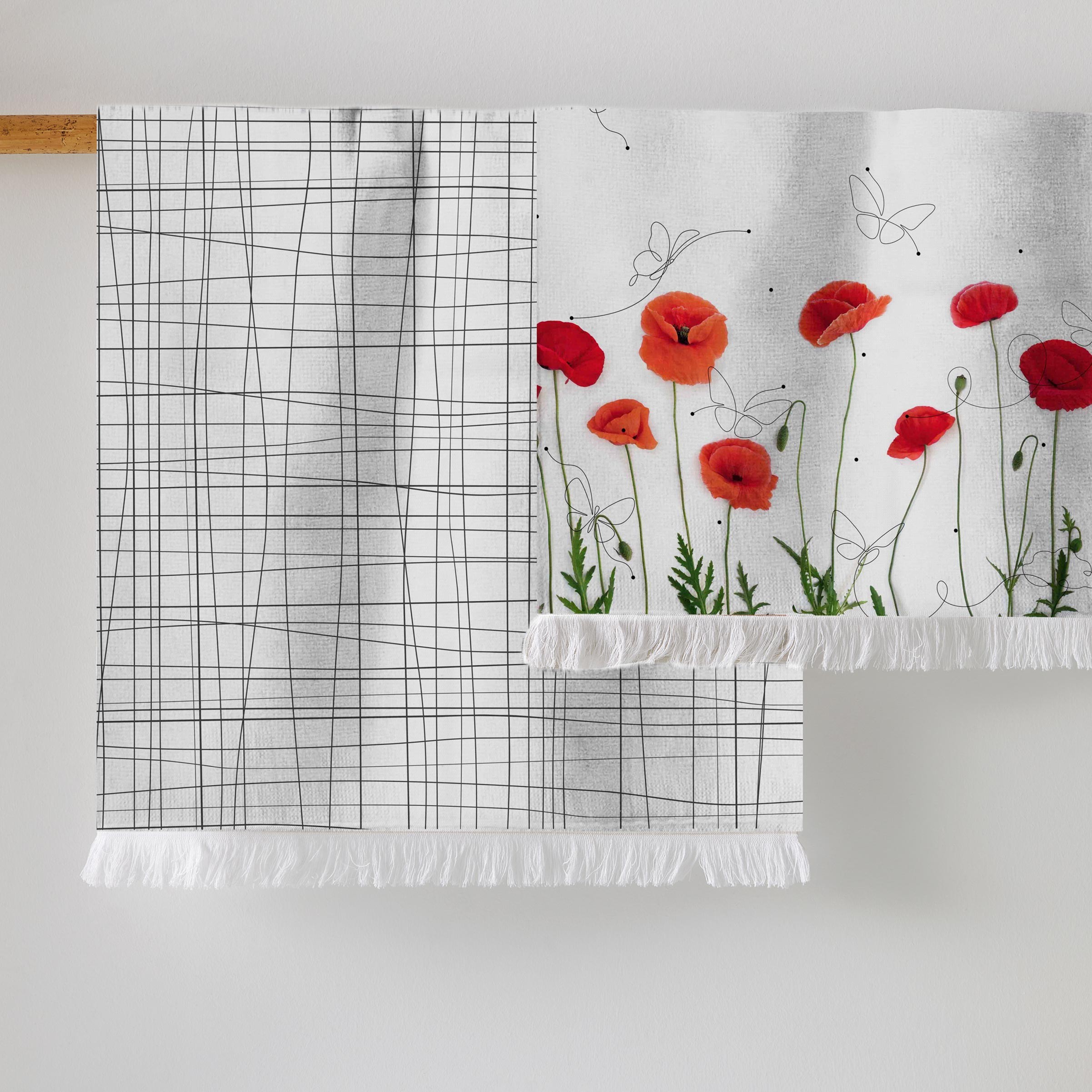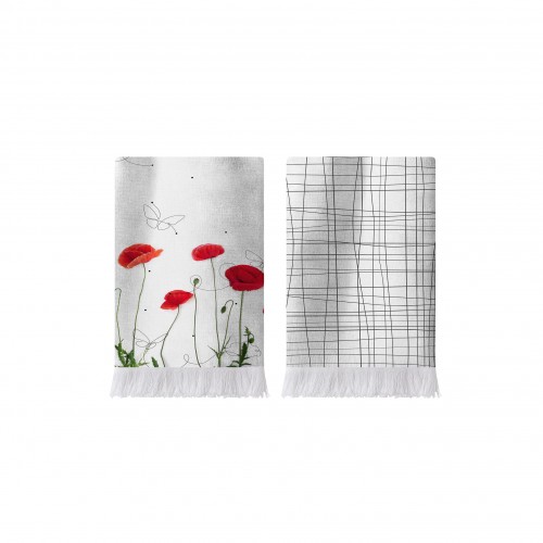 Color de las amapolas desteñido al color blanco de la toalla
