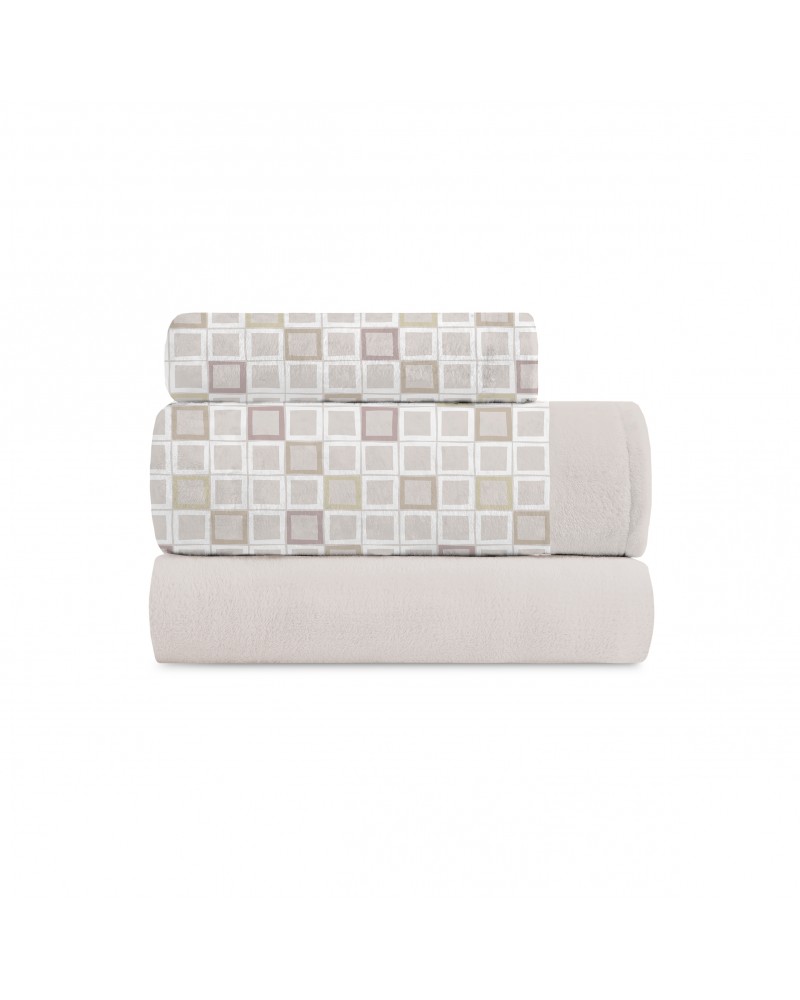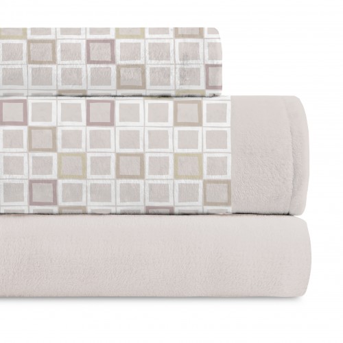 Juego sábanas invierno coralina cuadrados beige - Velvet