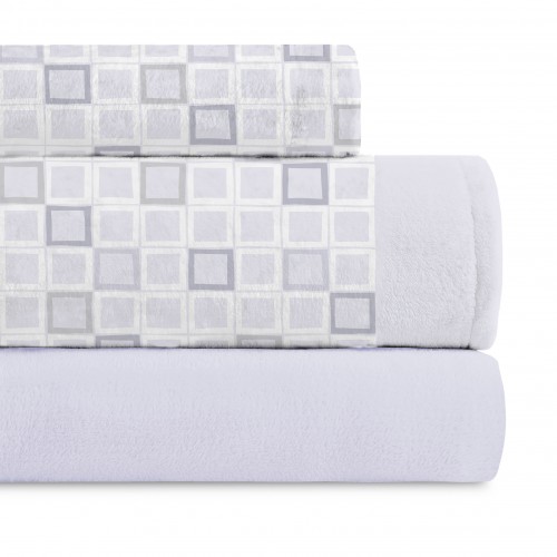 Juego sábanas invierno coralina cuadrados azules - Velvet