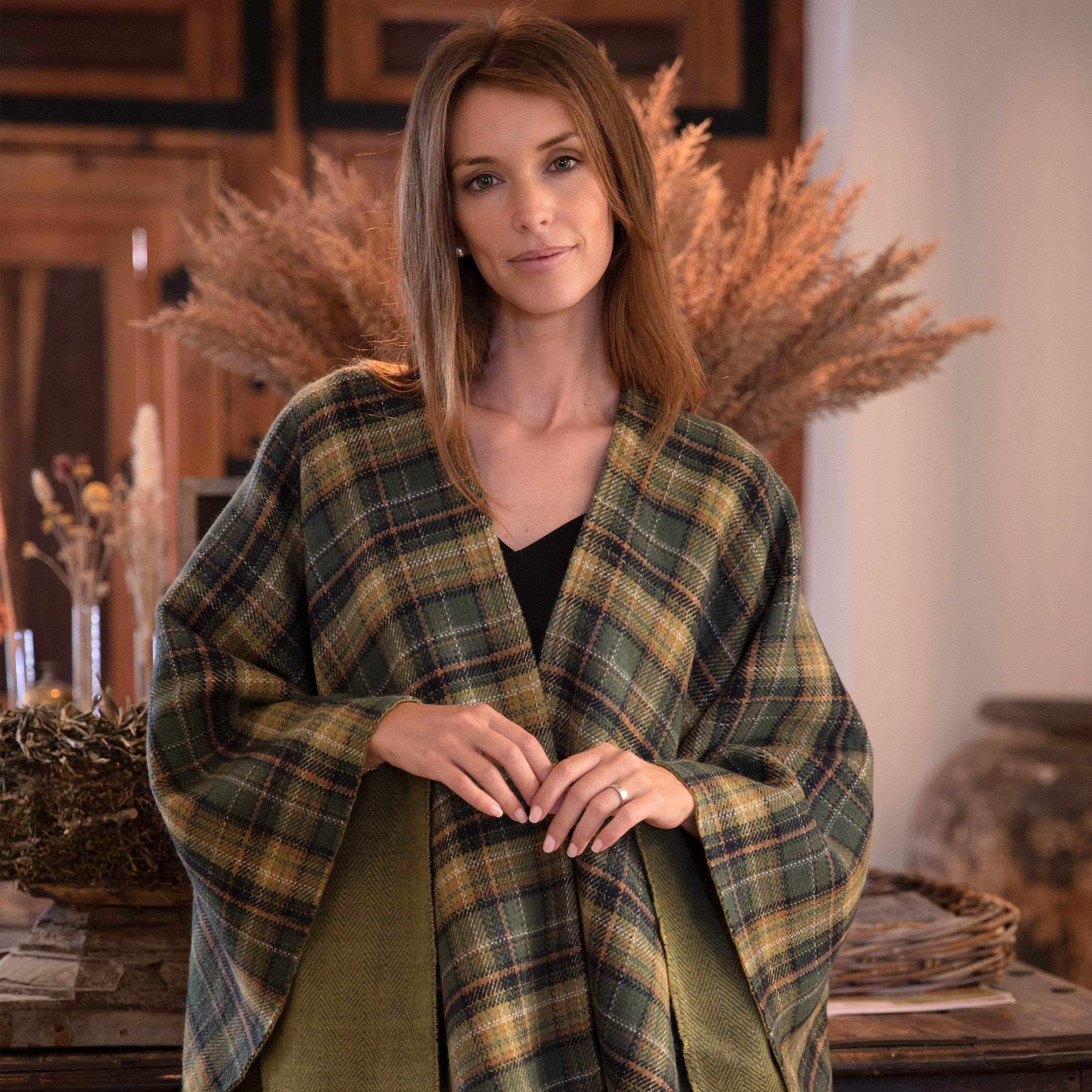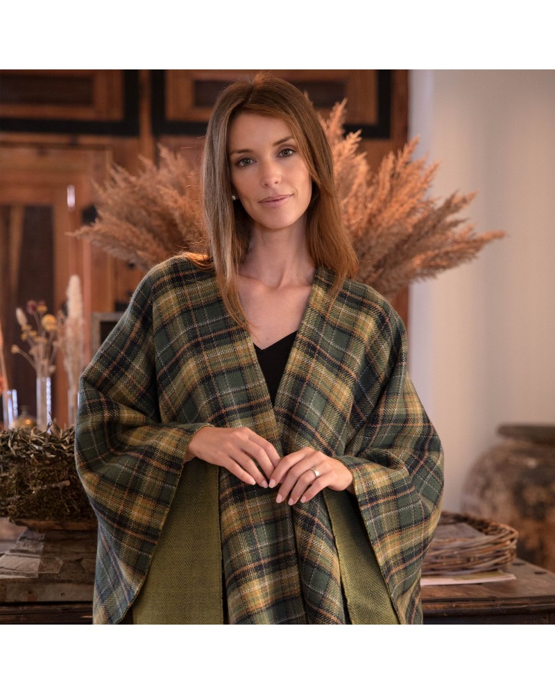 Poncho reversible cuadros verde - Clan