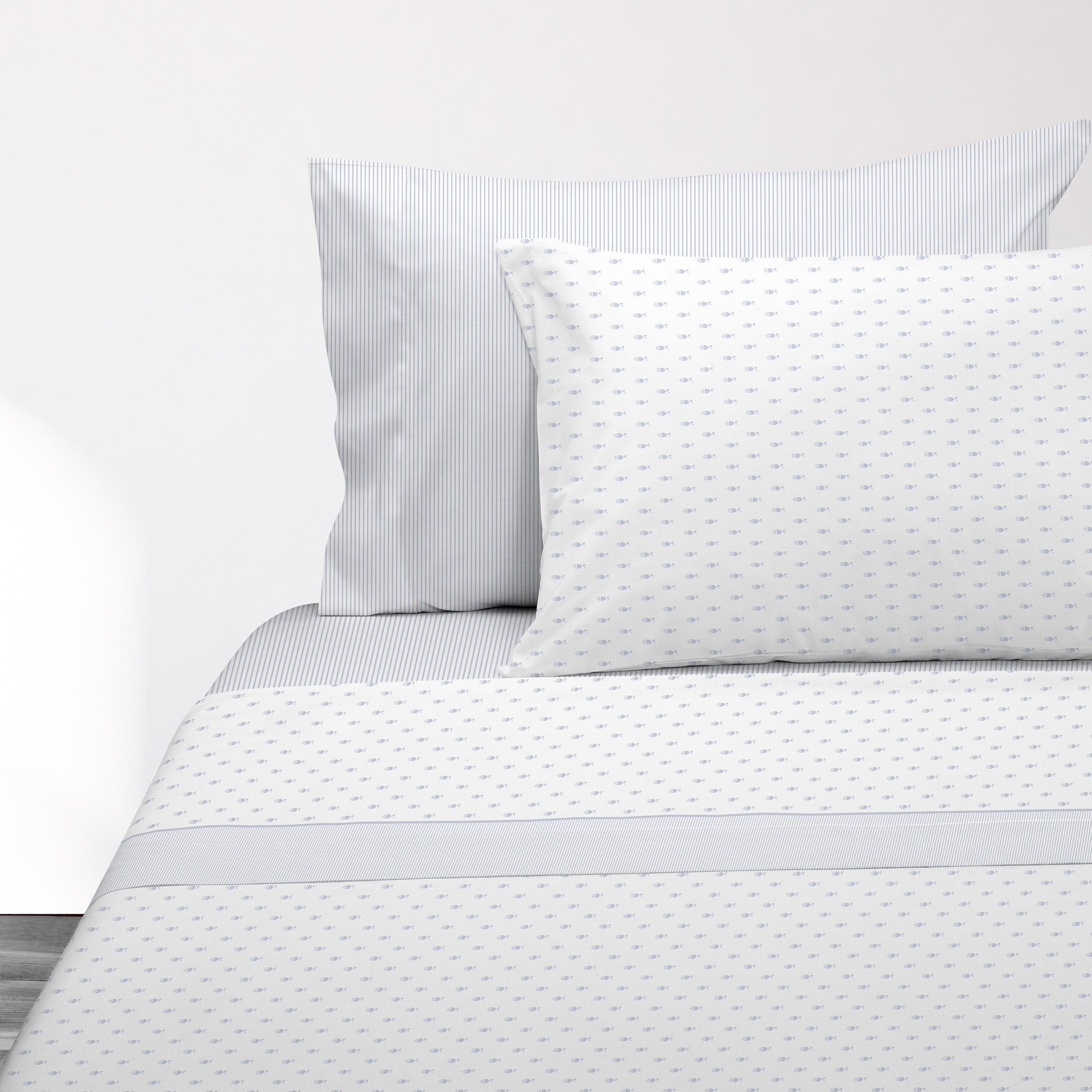 La funda de almohada es reversible, una de las caras va estampada con el dibujo de la encimera y la otra con el de la bajera.