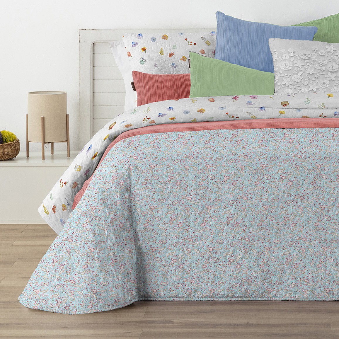 Colcha bouti reversible estampado flores y cachemires - Groovy