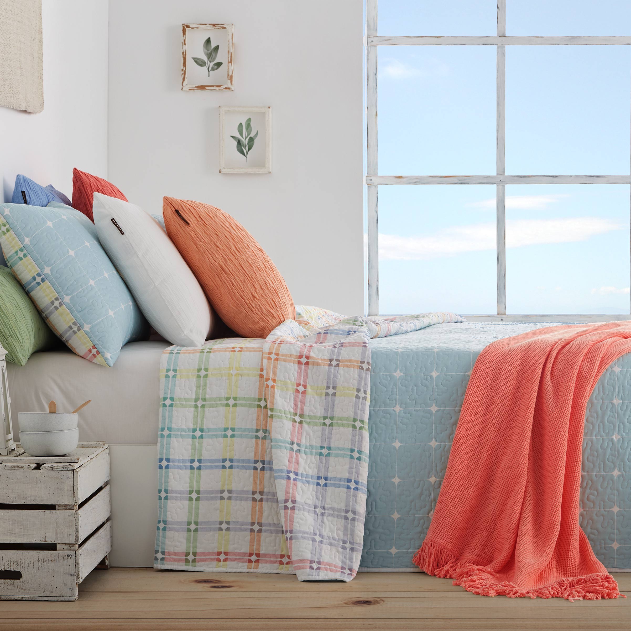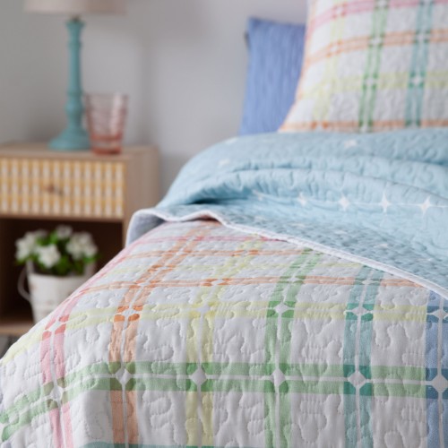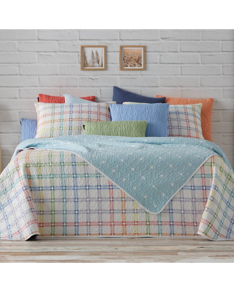 Colcha bouti reversible estampado geometrico cuadrados - Colors