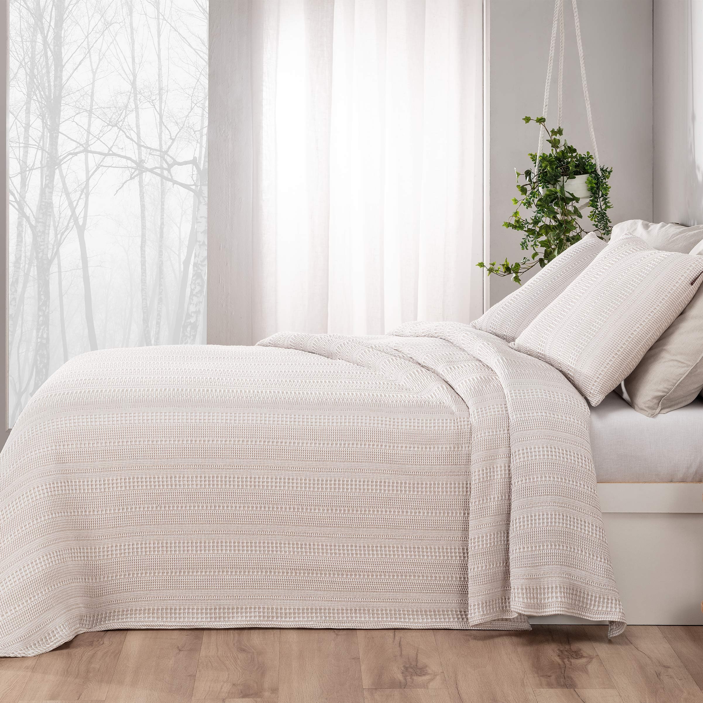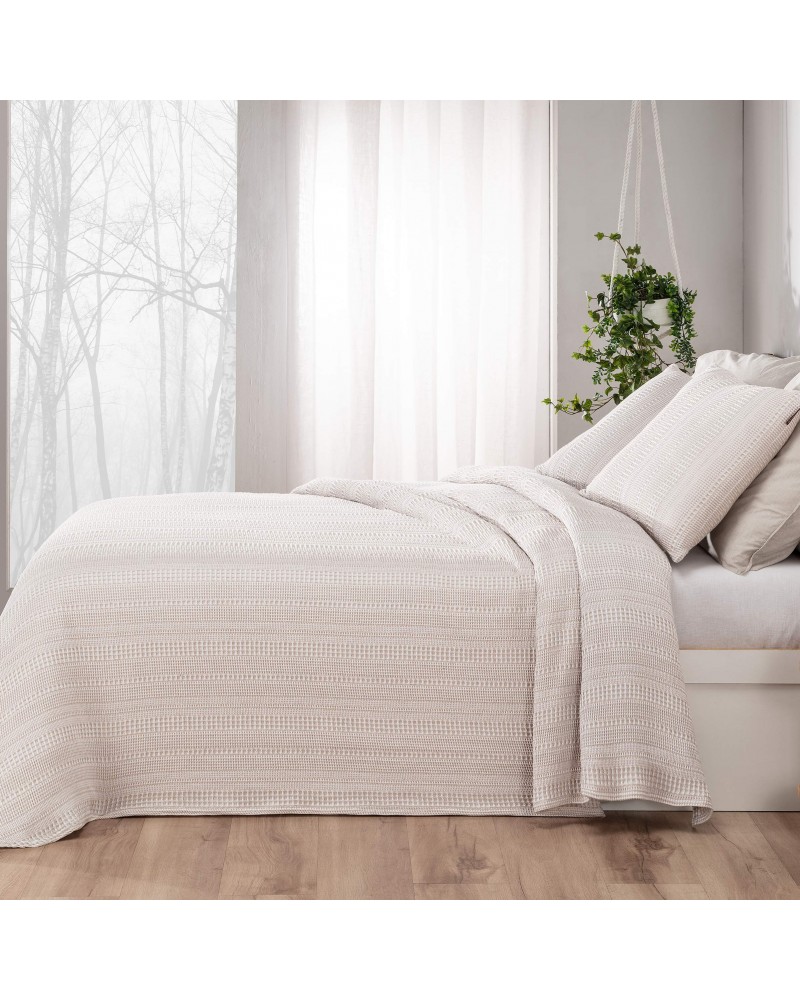 Colcha cubrecama jacquard algodón nido abeja beige - Mestiere