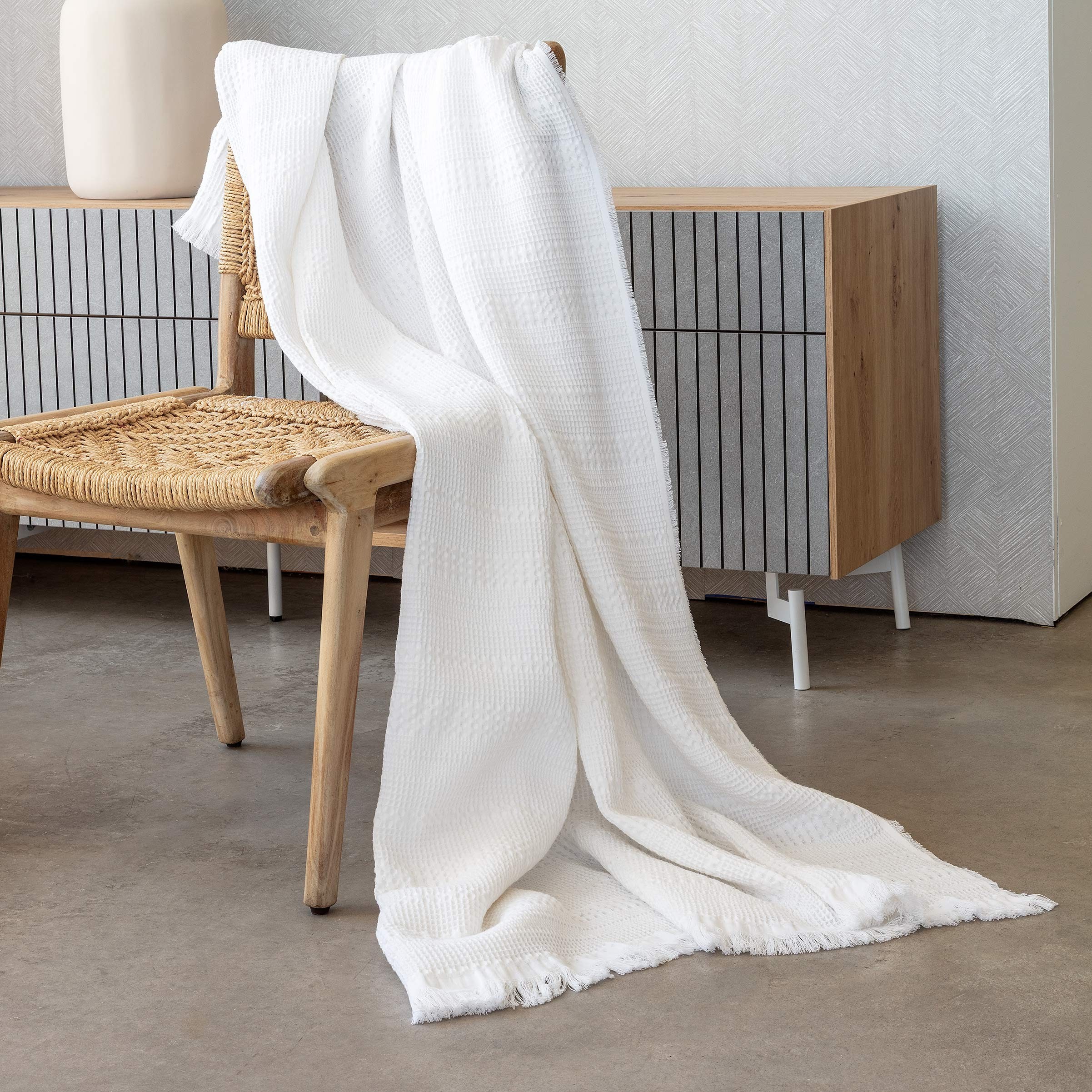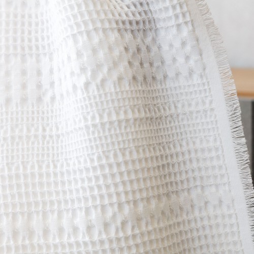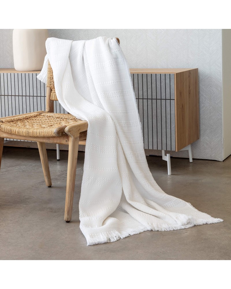 El plaid, fabricado en telar jacquard con fibras 100% algodón, puede experimentar una reducción de un 10% en sus dimensiones tras el lavado, debido al comportamiento natural del algodón.