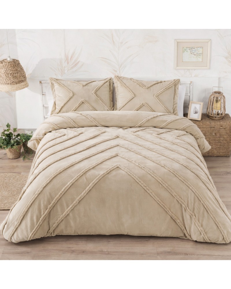 Edredón borreguito y terciopelo rayas aplicadas beige - Tuscan