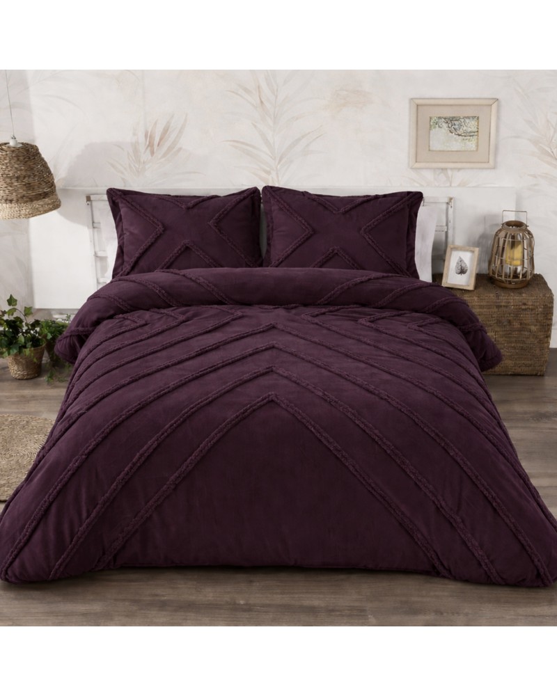 Edredón borreguito y terciopelo rayas aplicadas burdeos - Tuscan