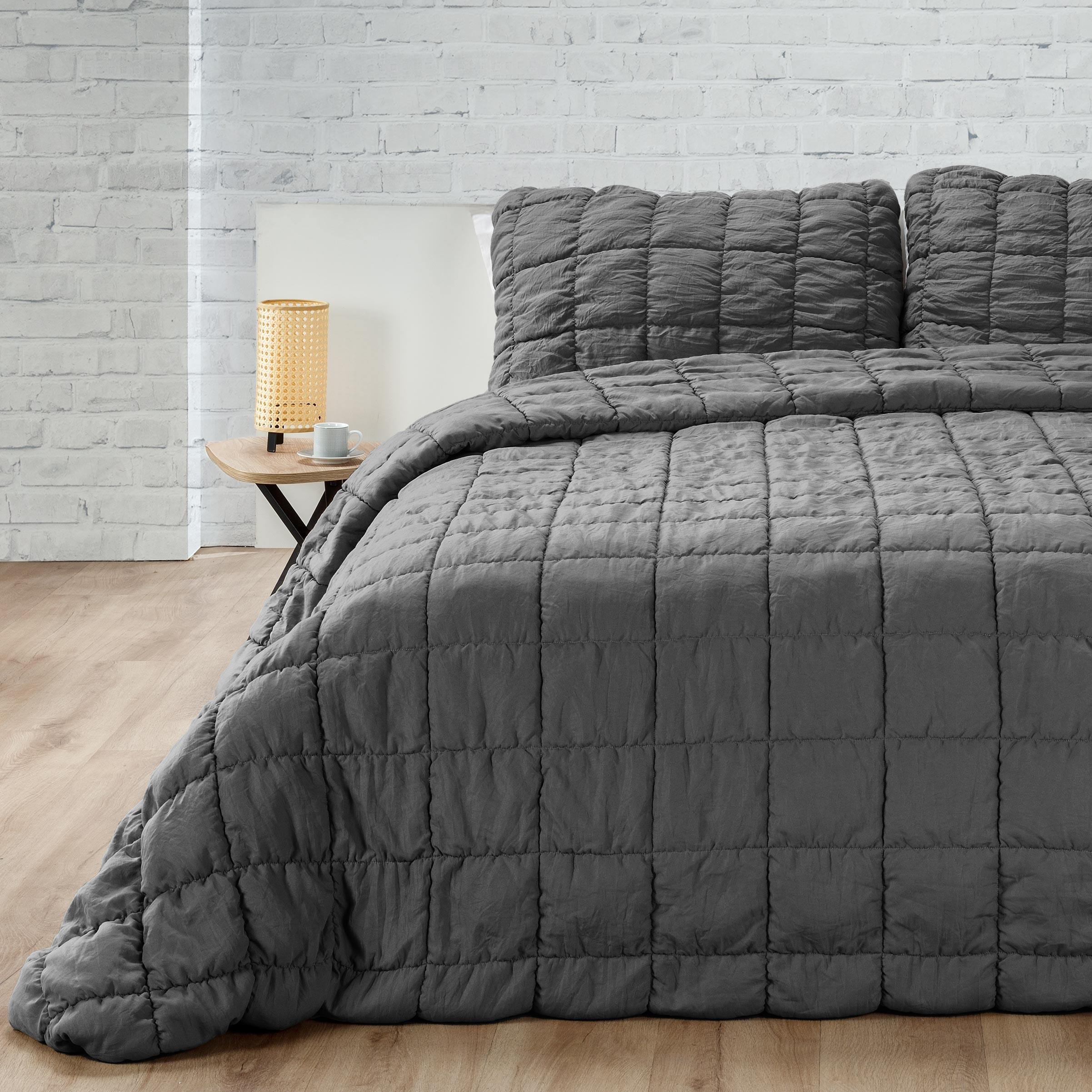 Disponible en un elegante tono gris, combina fácilmente con cualquier estilo de decoración y añade un toque de sofisticación a tu cama.