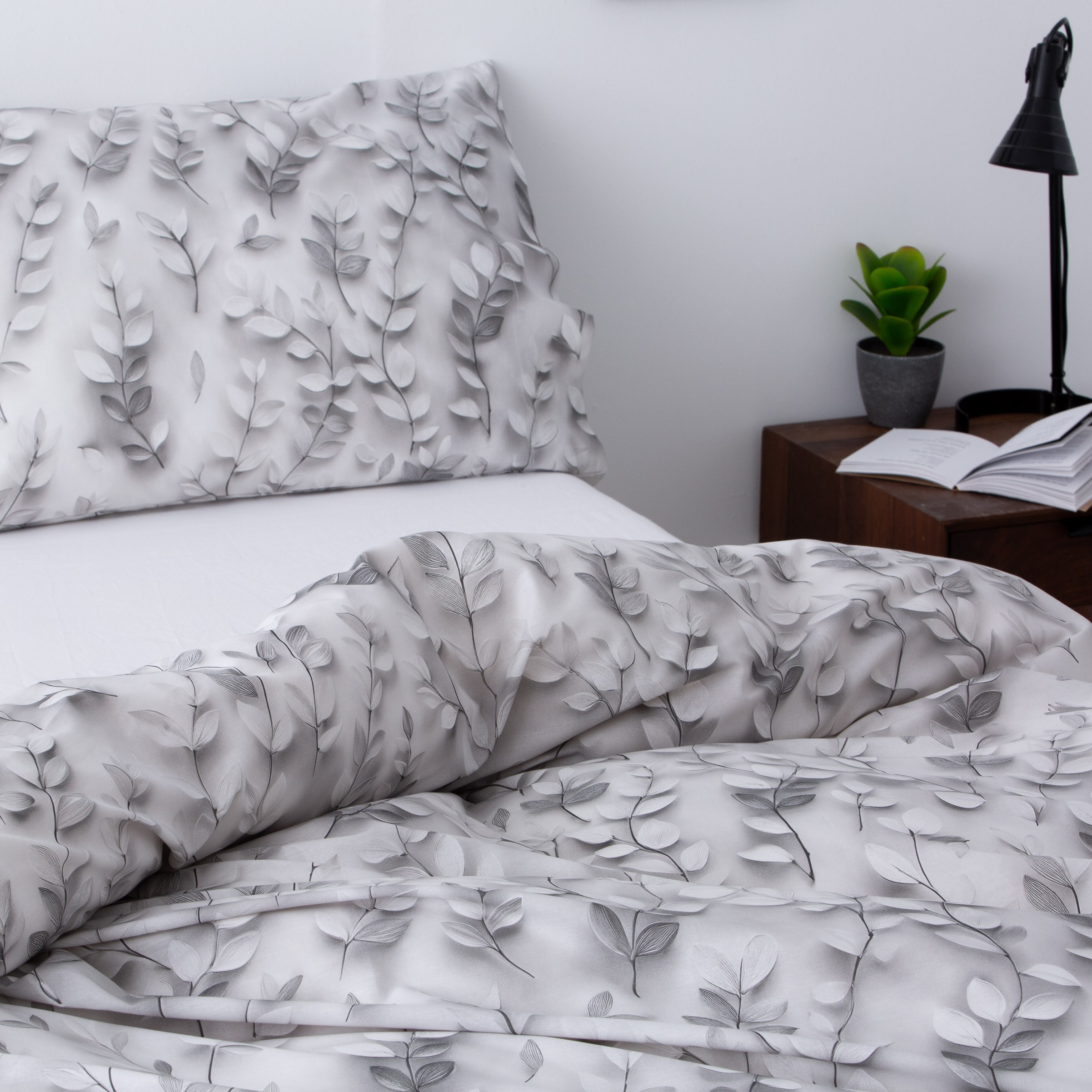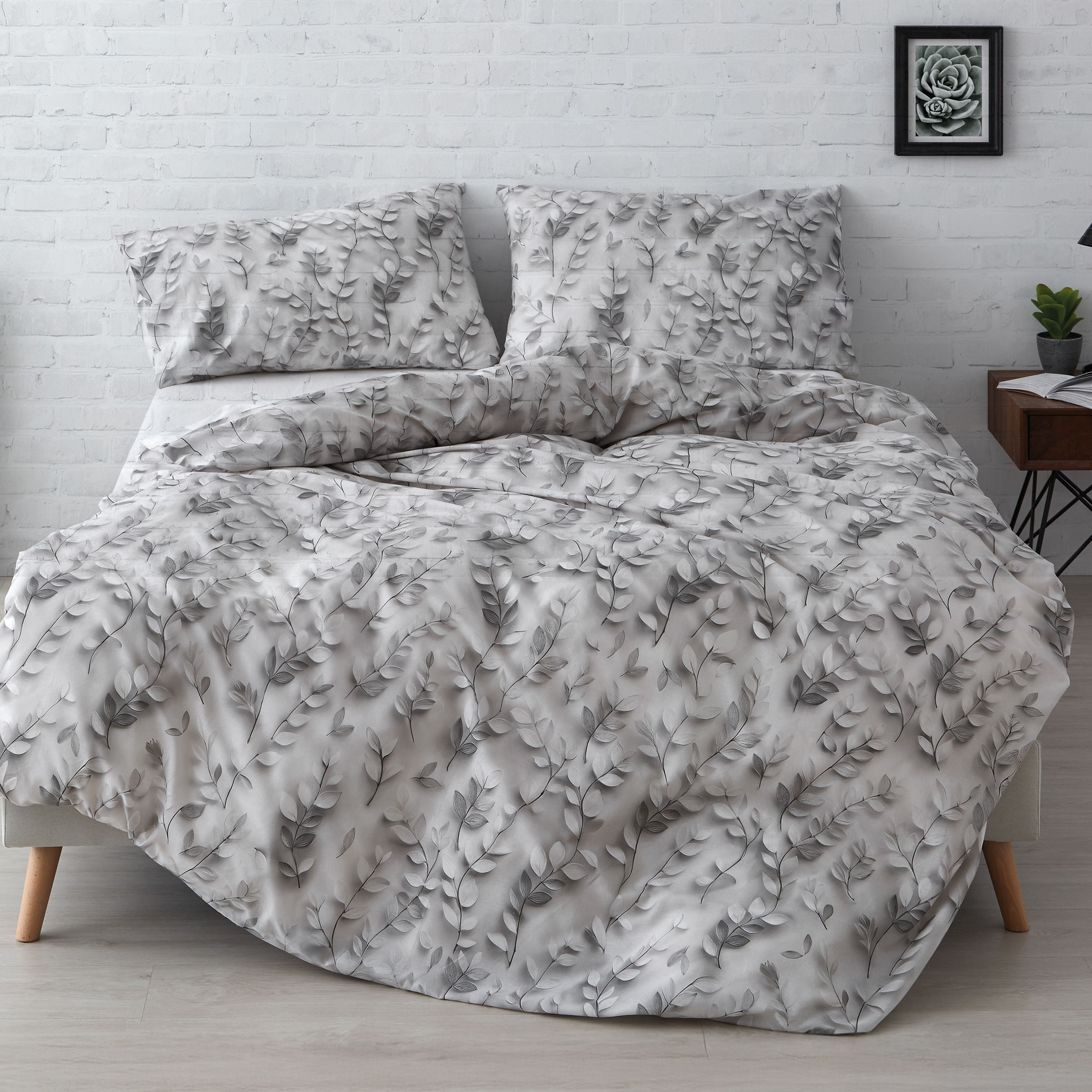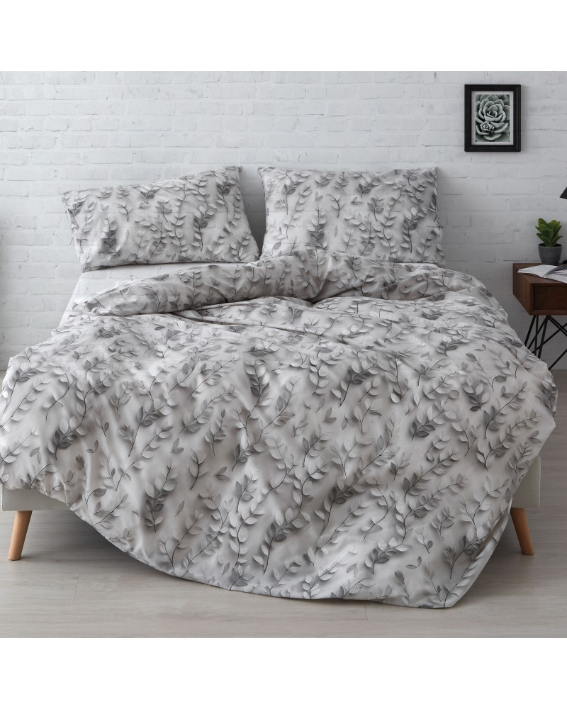 Juego funda nórdica algodón estampación digital ramas gris - Mode