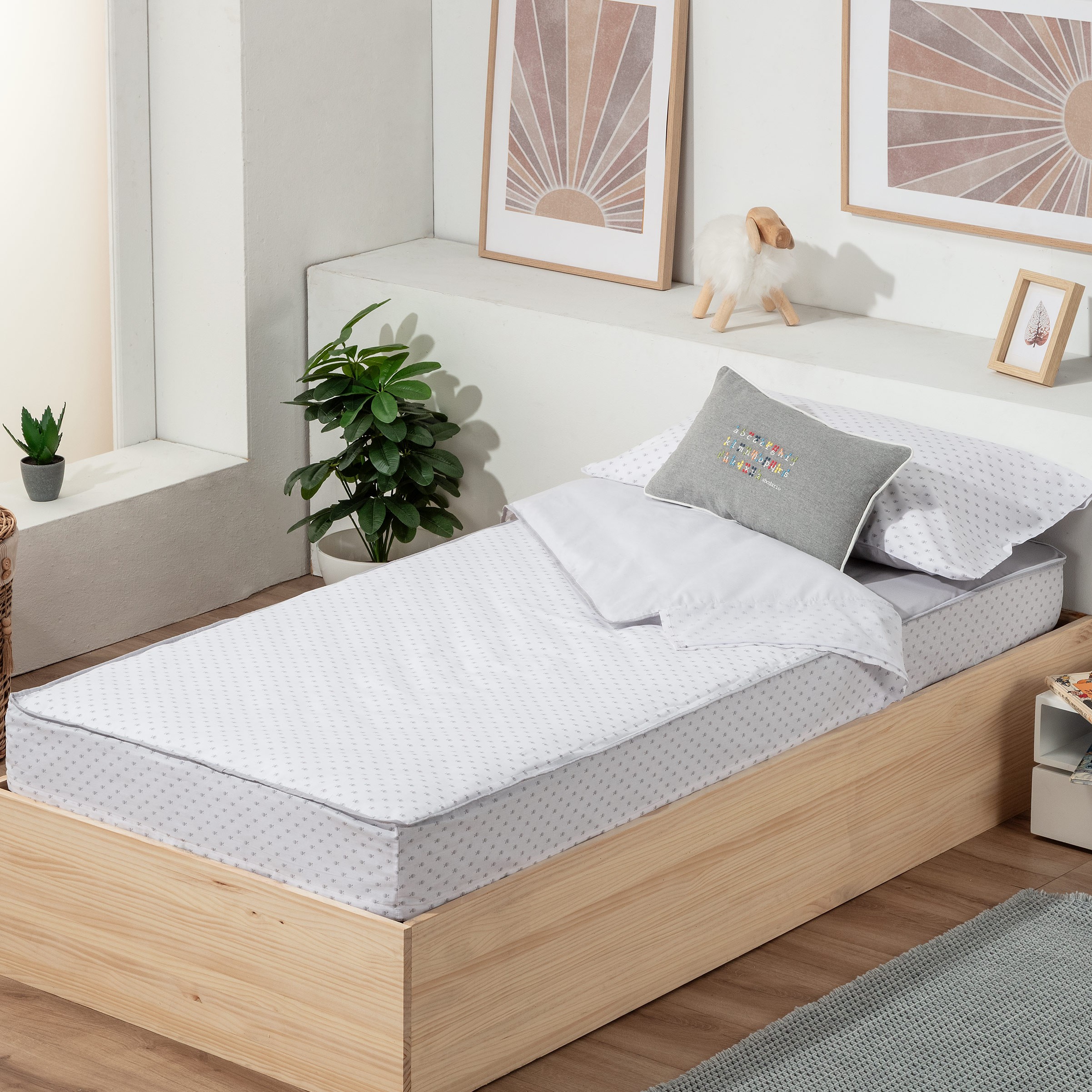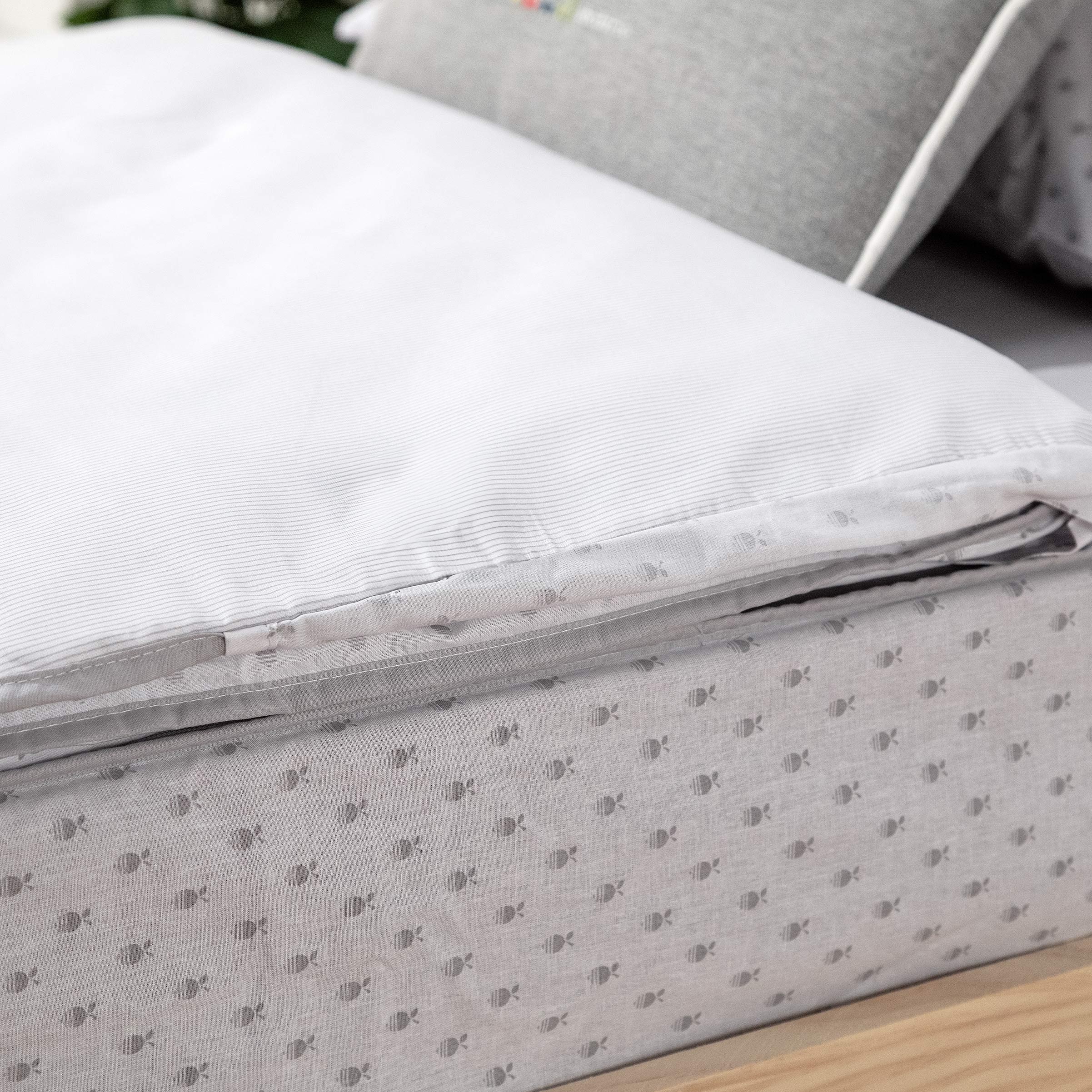 Es perfecto para camas nido o camas pegadas a la pared.Puede adquirir por separado el relleno de 200 gramos, de este modo puede tener distintos modelos de saco y usar el mismo relleno.