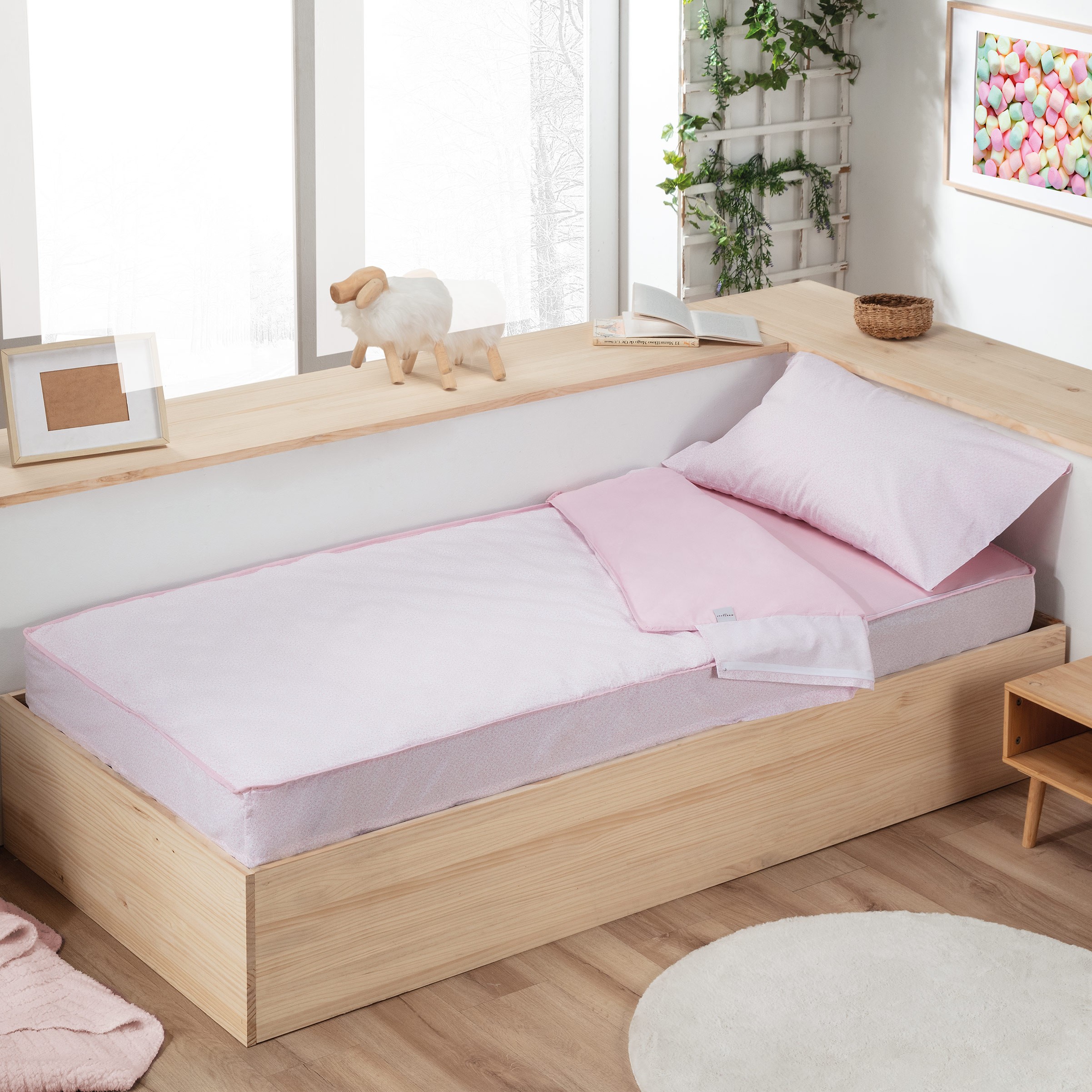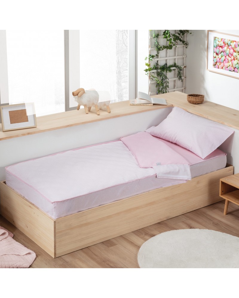 Es perfecto para camas nido o camas pegadas a la pared.Puede adquirir por separado el relleno de 200 gramos, de este modo puede tener distintos modelos de saco y usar el mismo relleno.