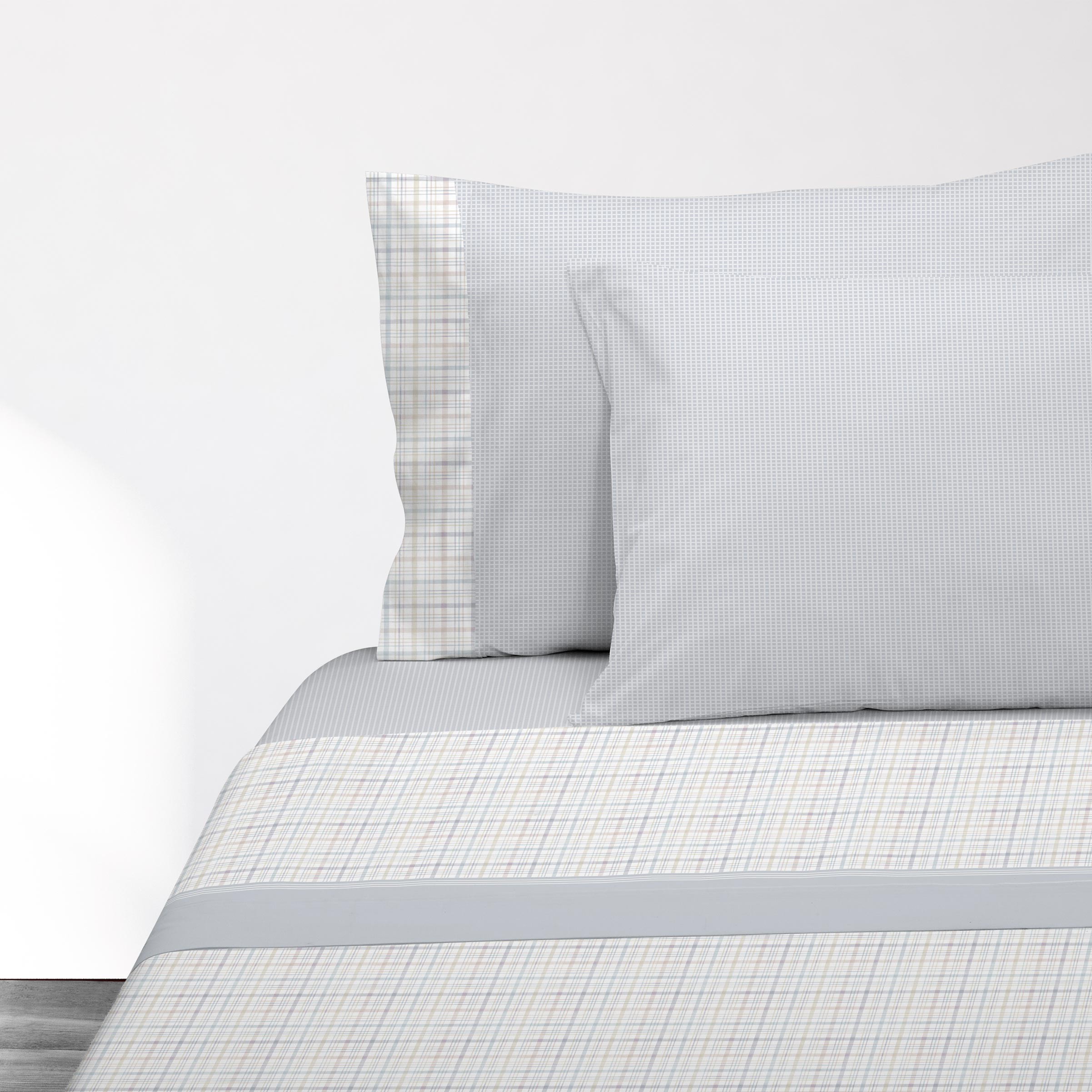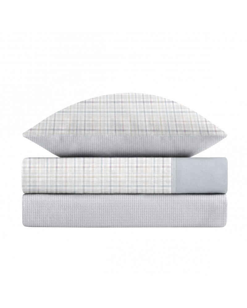 Juego sábanas invierno franela cuadros azul - Luna