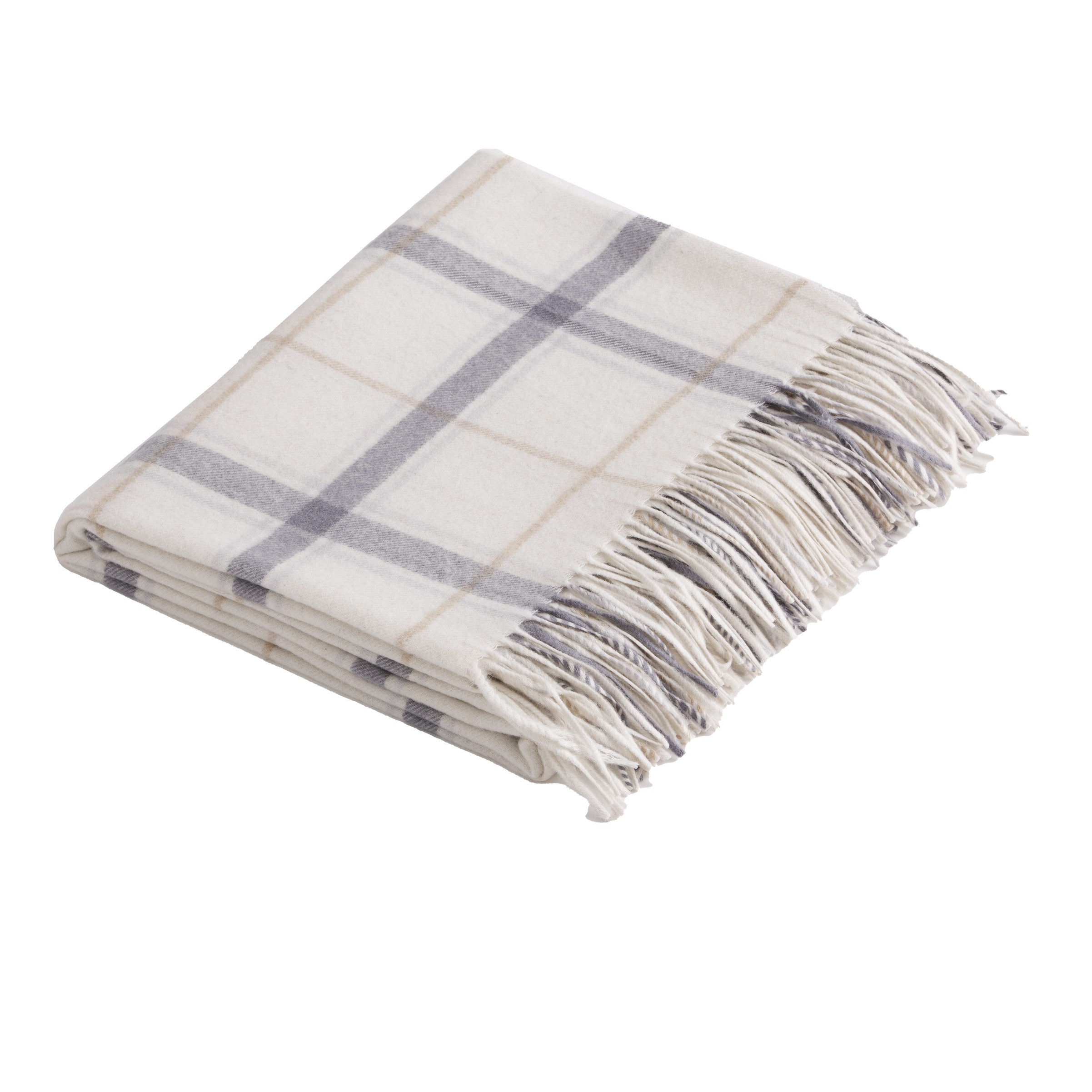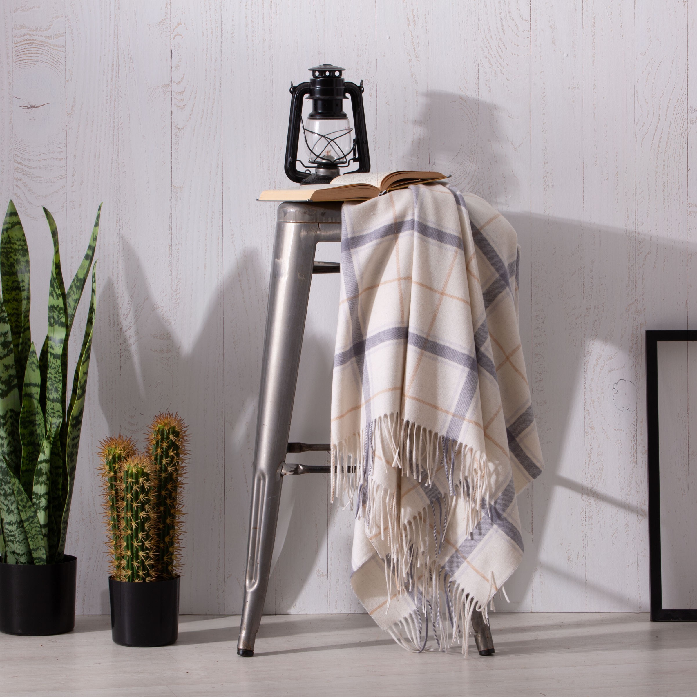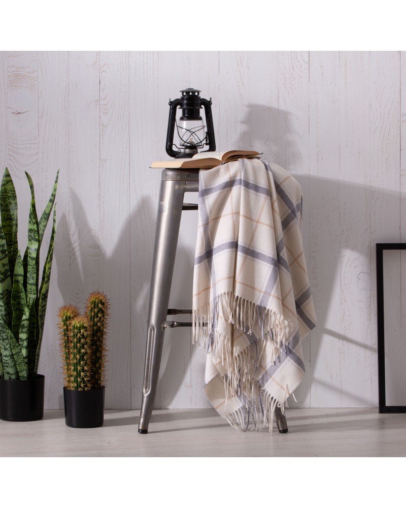 Manta plaid sofá de lana cuadros nata y azul - Merino