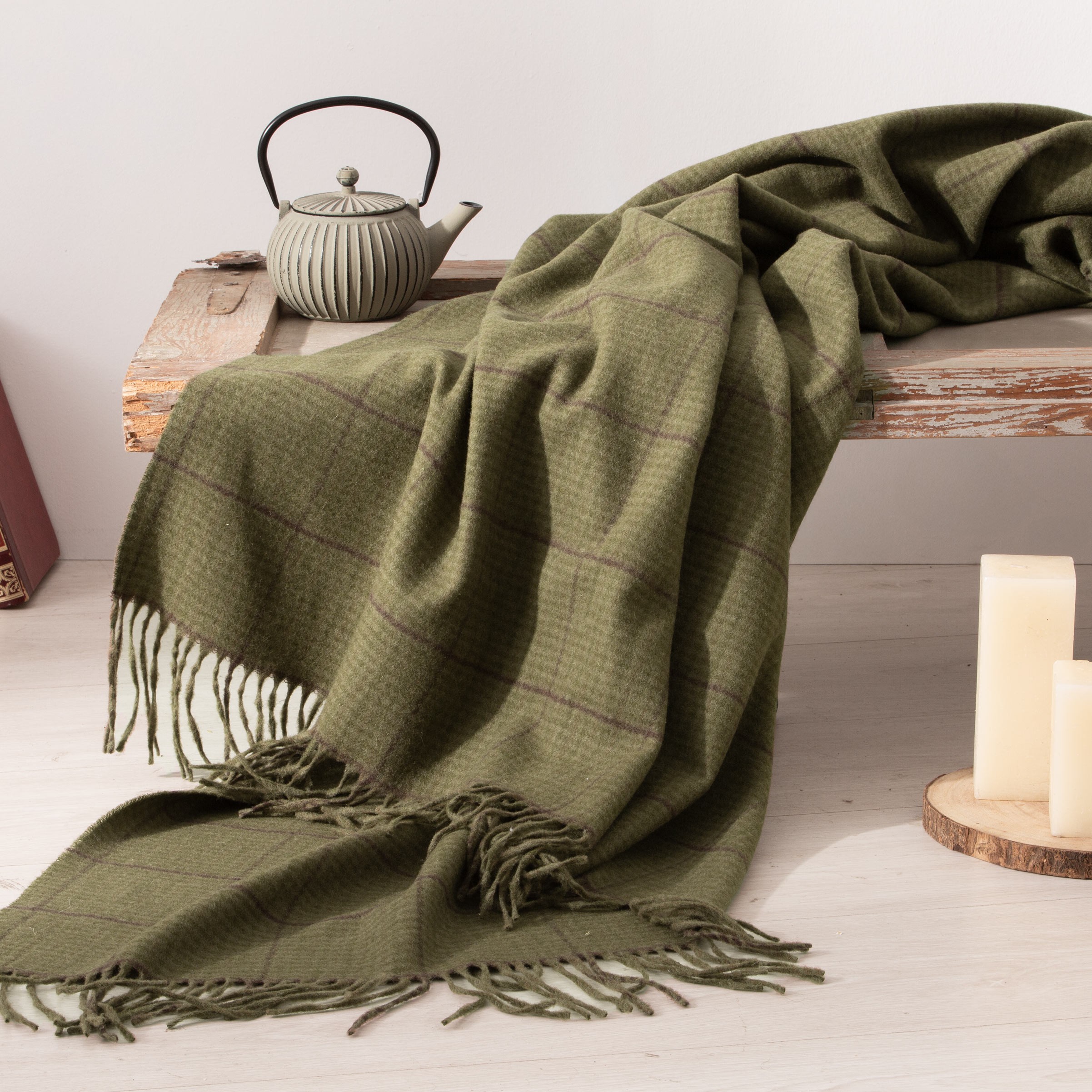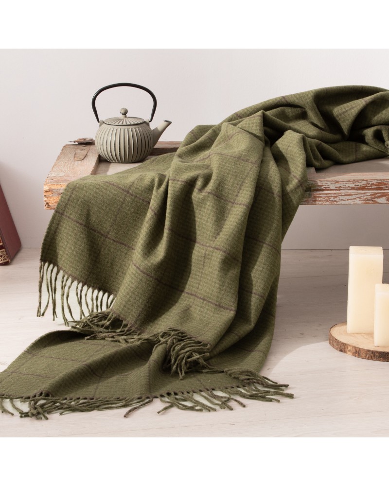 Manta plaid sofá de lana cuadros verde militar - Merino