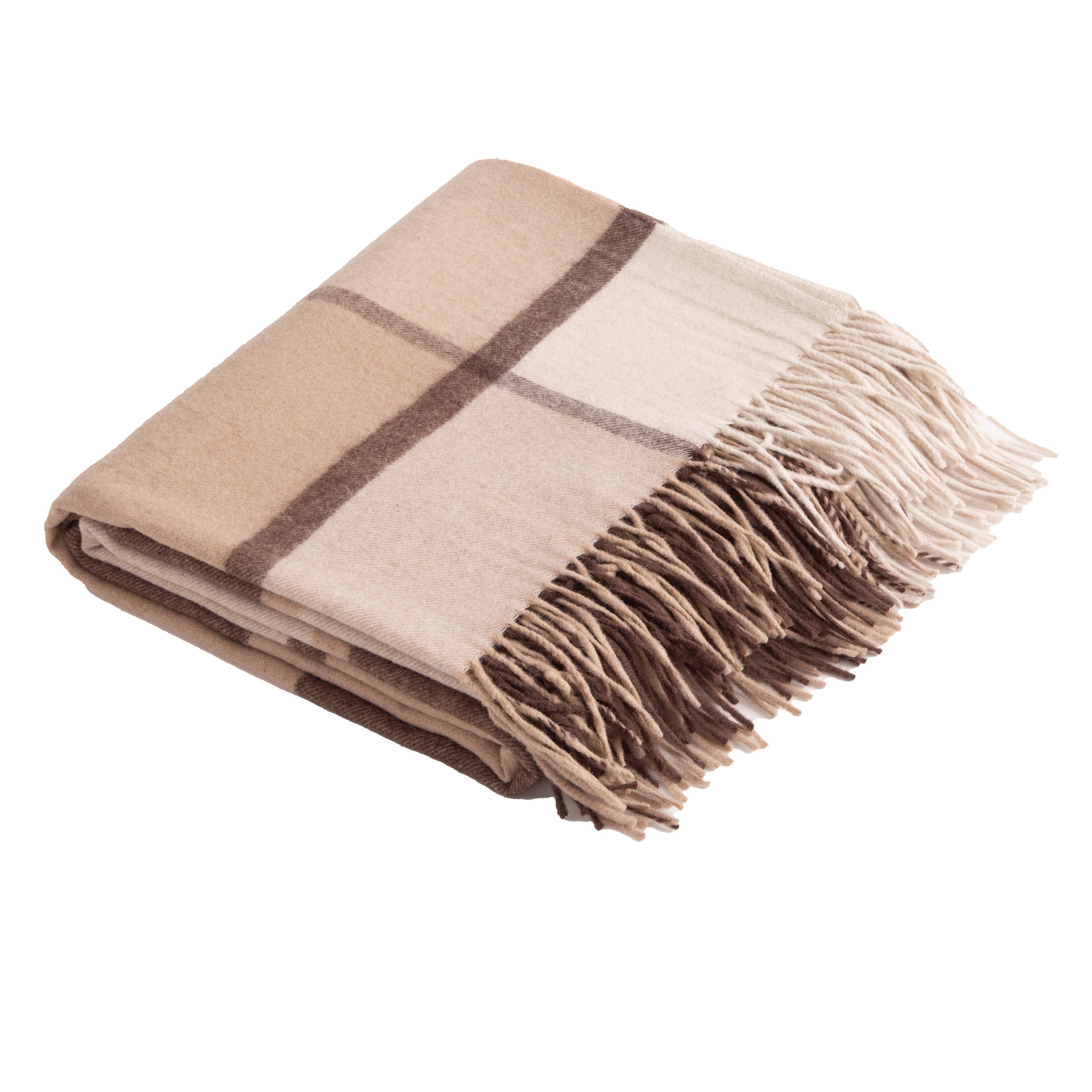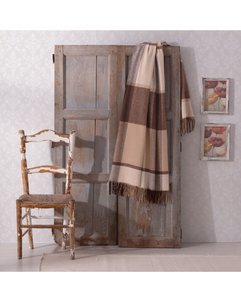 Manta plaid sofá de lana cuadros beige y marrón - Merino