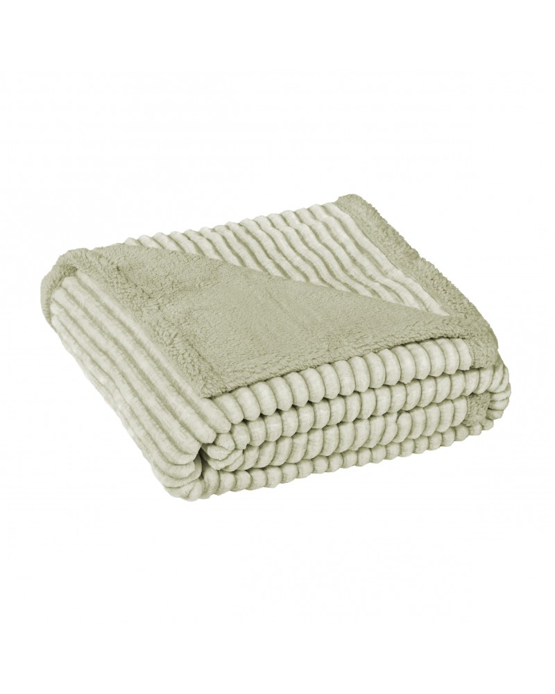 Manta plaid sofá borreguito unicolor rayas verde - Lines Melange