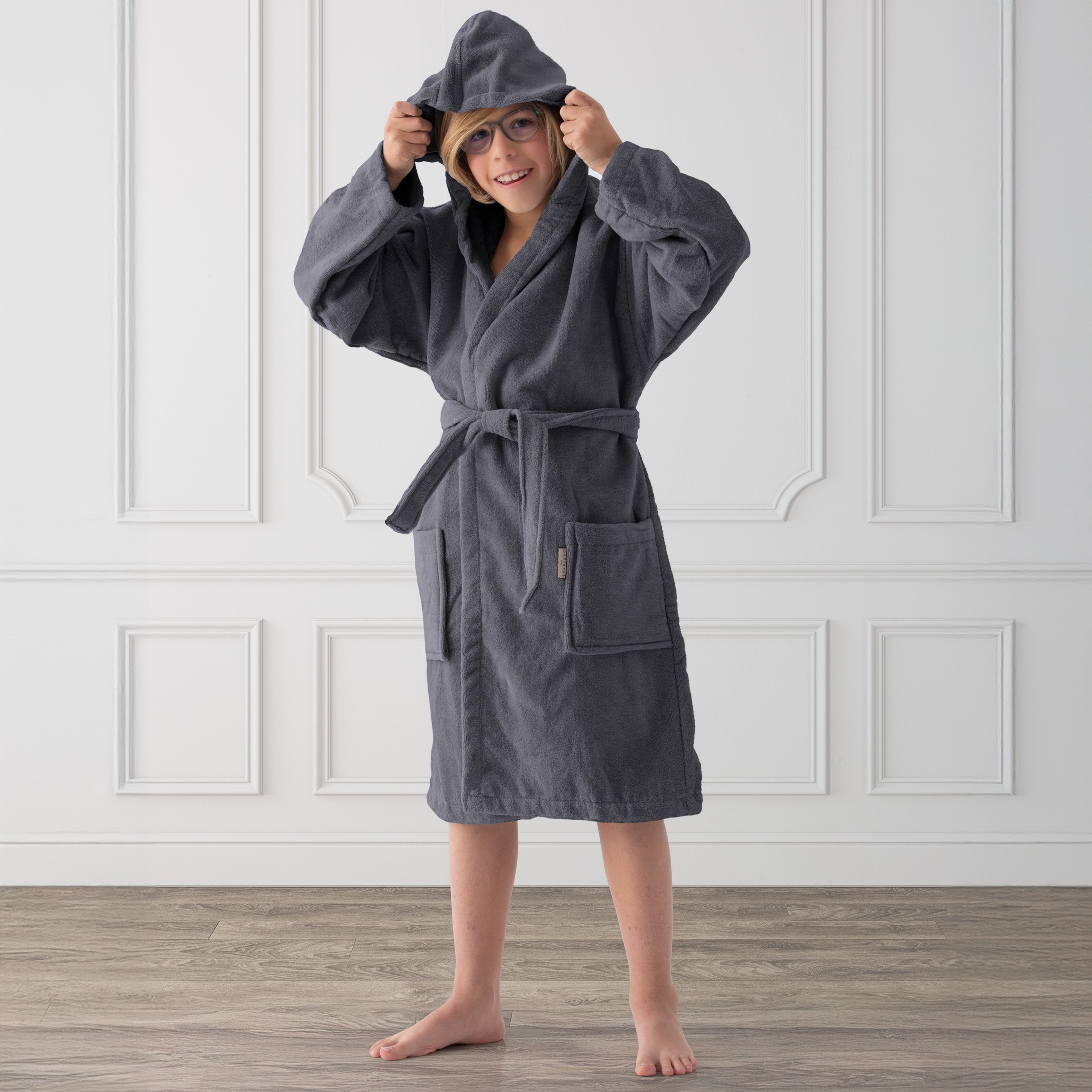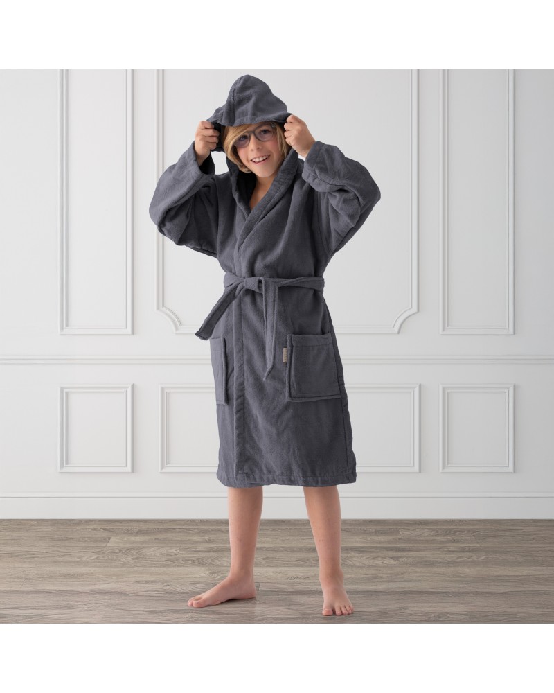 Suavidad, estilo y confort se unen en este albornoz infantil pensado para los más mayores de la casa. Confeccionado con un tejido de 450gr/m², combina un exterior de terciopelo ultrasuave con un interior de rizo absorbente, ofreciendo una sensación cálida y envolvente después del baño.