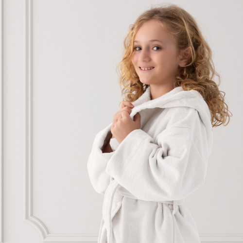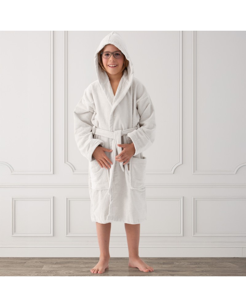 Albornoz juvenil terciopelo con capucha blanco - Velvet