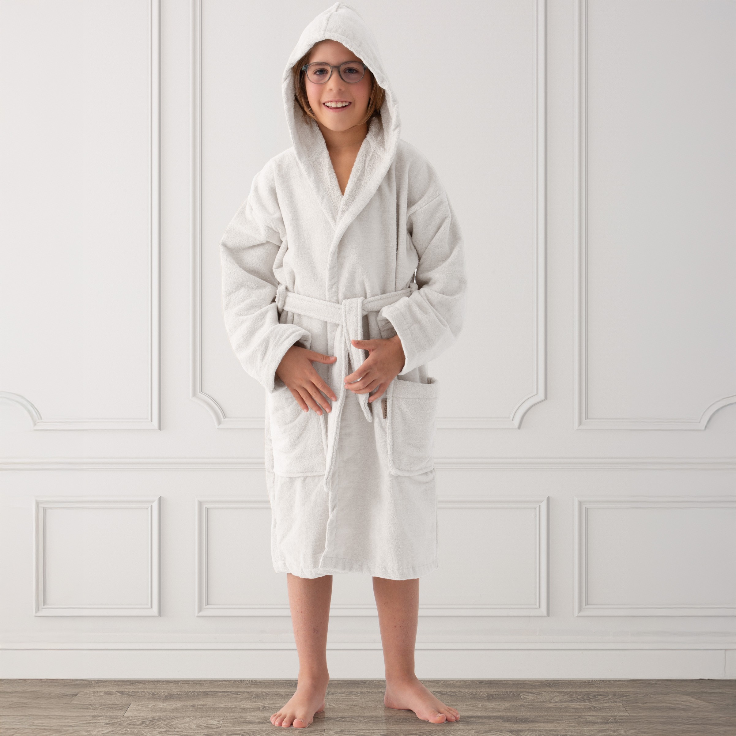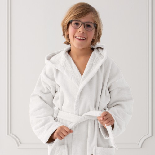 Suavidad, estilo y confort se unen en este albornoz infantil pensado para los más mayores de la casa. Confeccionado con un tejido de 450gr/m², combina un exterior de terciopelo ultrasuave con un interior de rizo absorbente, ofreciendo una sensación cálida y envolvente después del baño.
