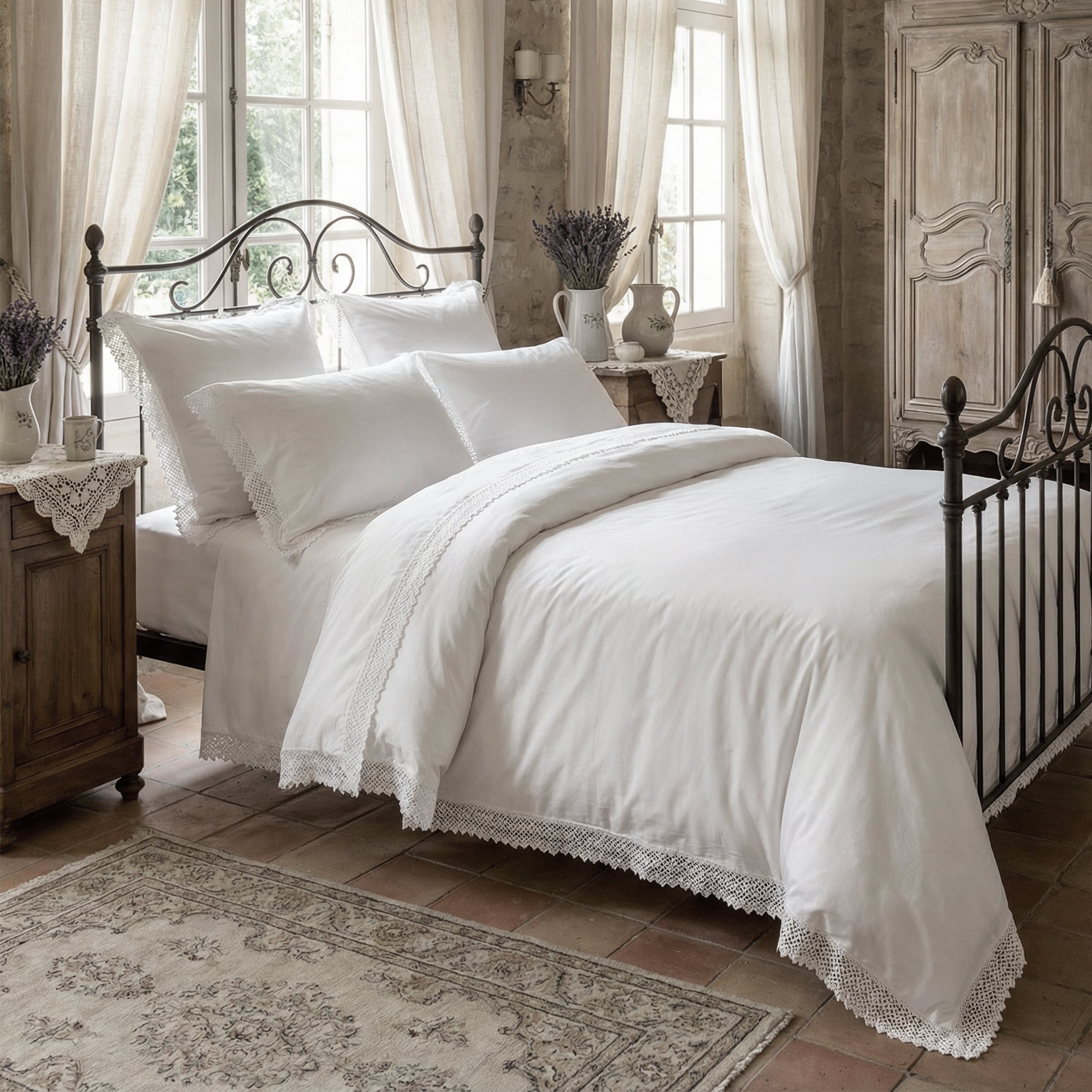 Ideal para quienes buscan una ropa de cama sobria, romántica y con acabados artesanales.