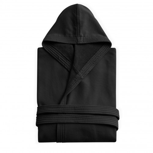 Albornoz con capucha en tono antracita, una tonalidad intensa y elegante que aporta un estilo sobrio, moderno y atemporal.