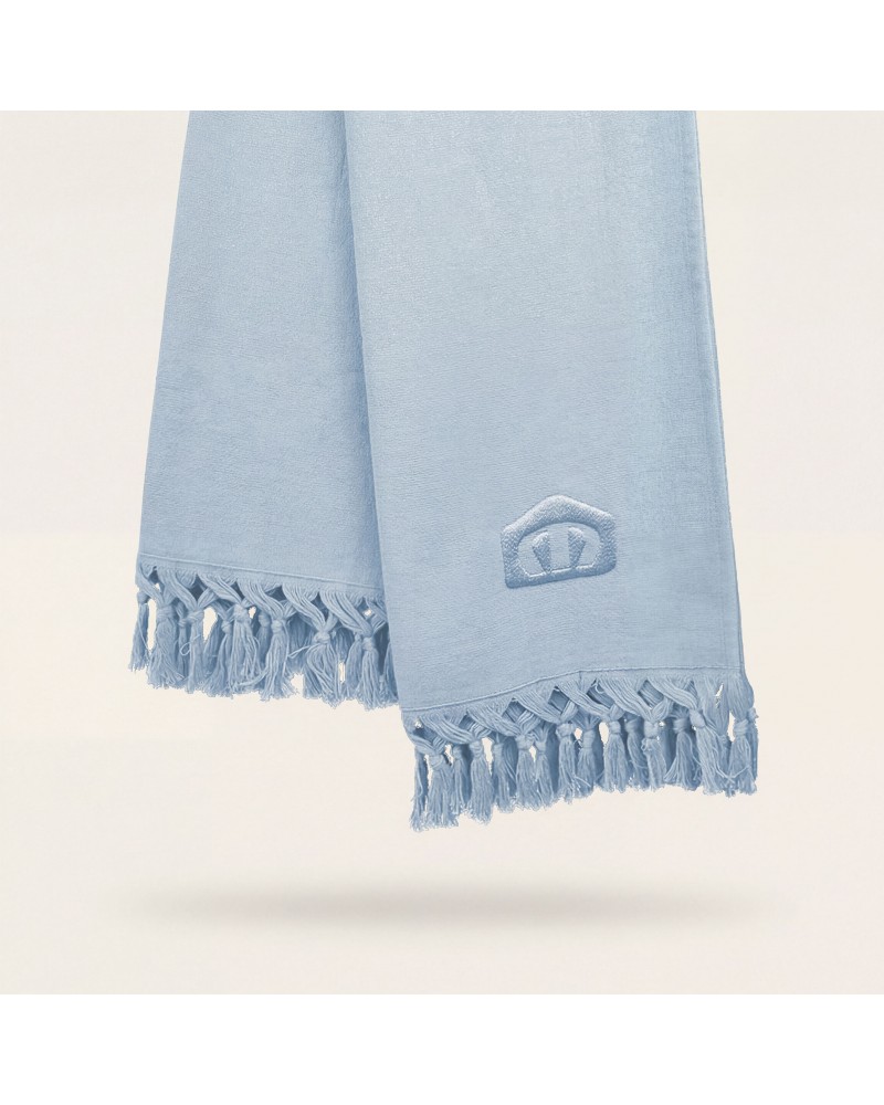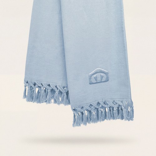 Toalla pareo algodón con flecos azul cielo suave