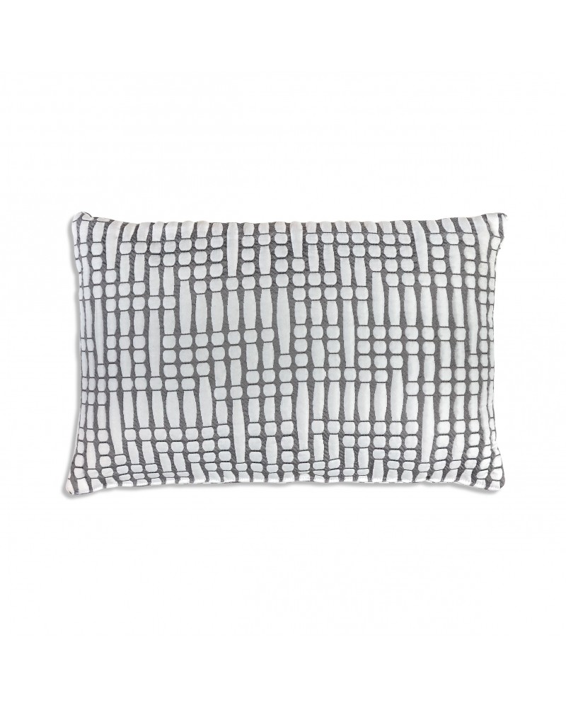 Su patrón estructurado crea un interesante juego visual que añade dinamismo sin perder equilibrio, perfecta para combinar con textiles lisos o para completar el conjunto con el cubrecama a juego.