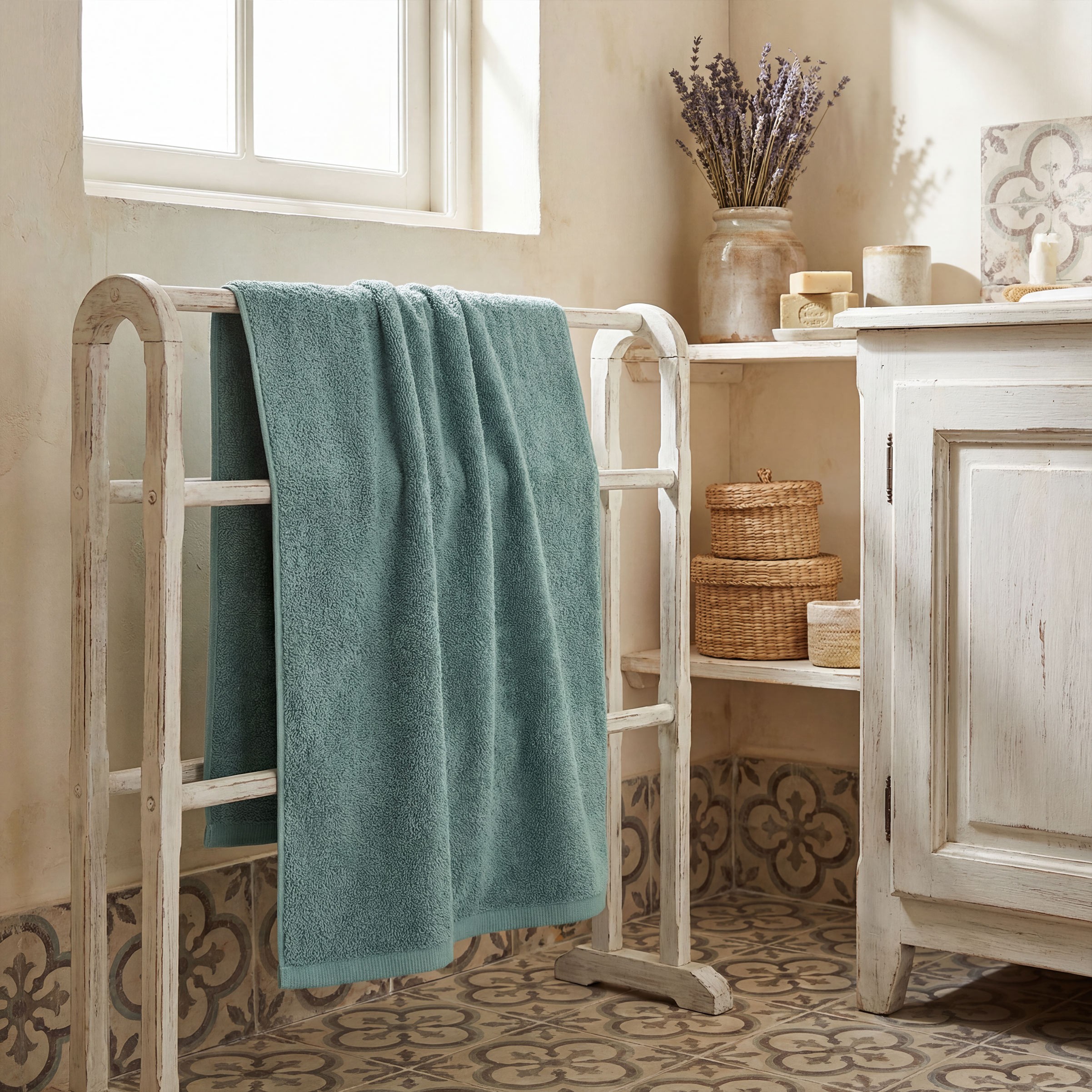 Su tejido de rizo garantiza una buena absorción y un tacto agradable que se mantiene lavado tras lavado.