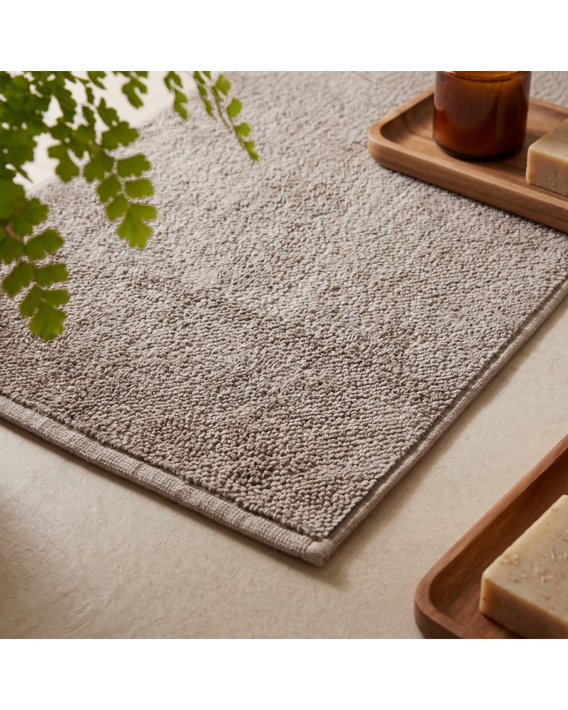 Confeccionada en 100% algodón, destaca por su agradable textura tipo bucle, que no solo se aprecia visualmente sino que también ofrece una sensación suave y confortable al pisar.