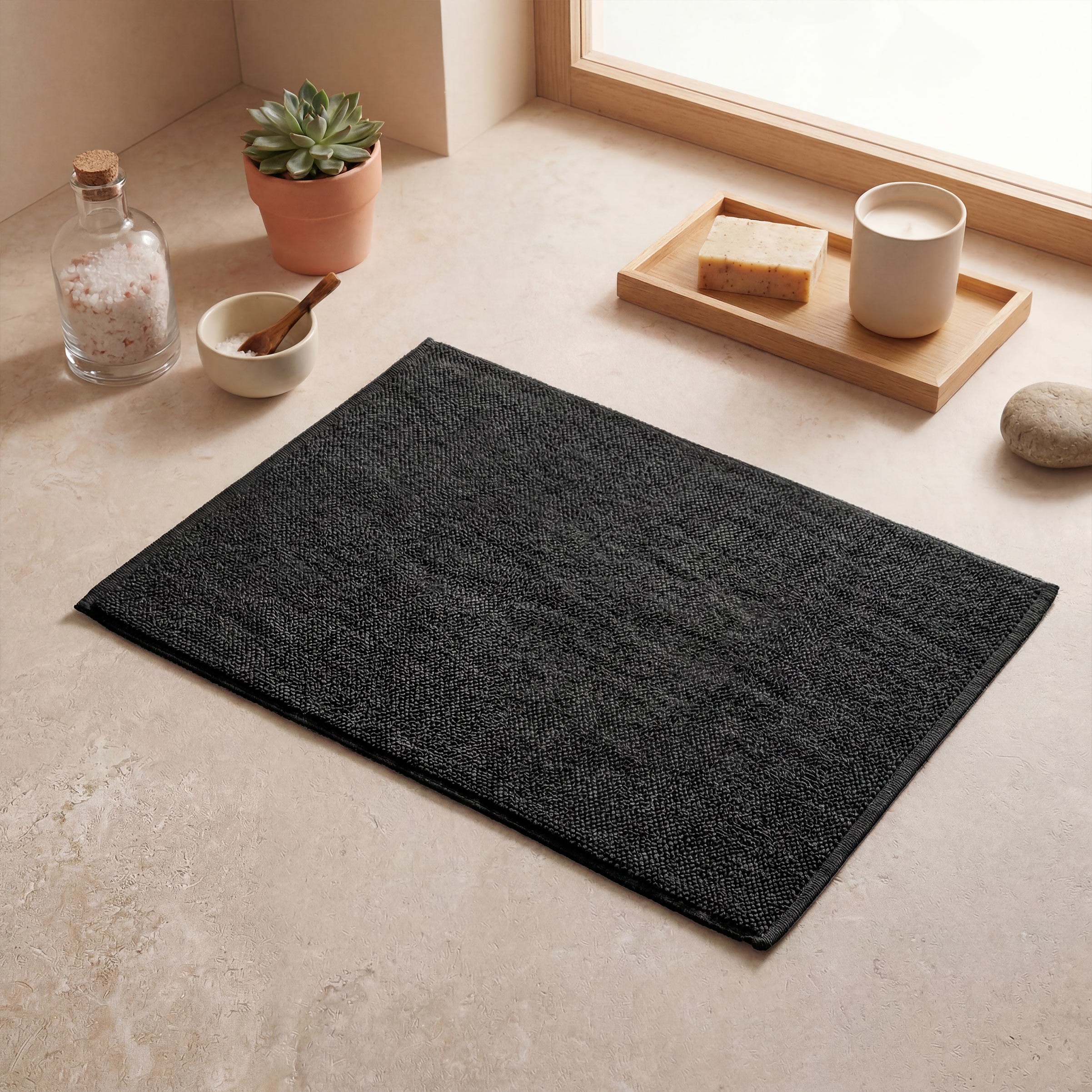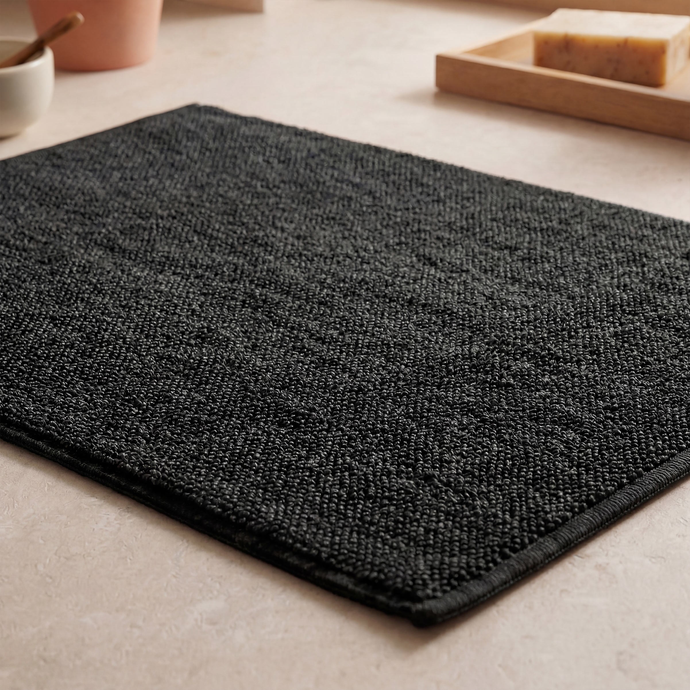 Una alfombra práctica, resistente y fácil de integrar en cualquier estilo de baño gracias a su diseño limpio y atemporal.