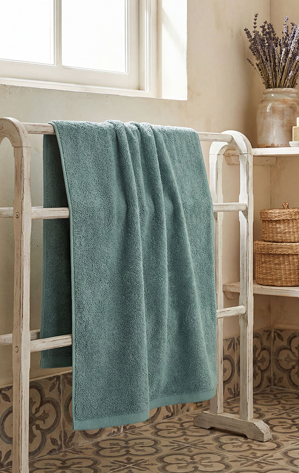 Su estructura permite una buena absorción de la humedad, ayudando a mantener el espacio seco y confortable tras la ducha o el baño.