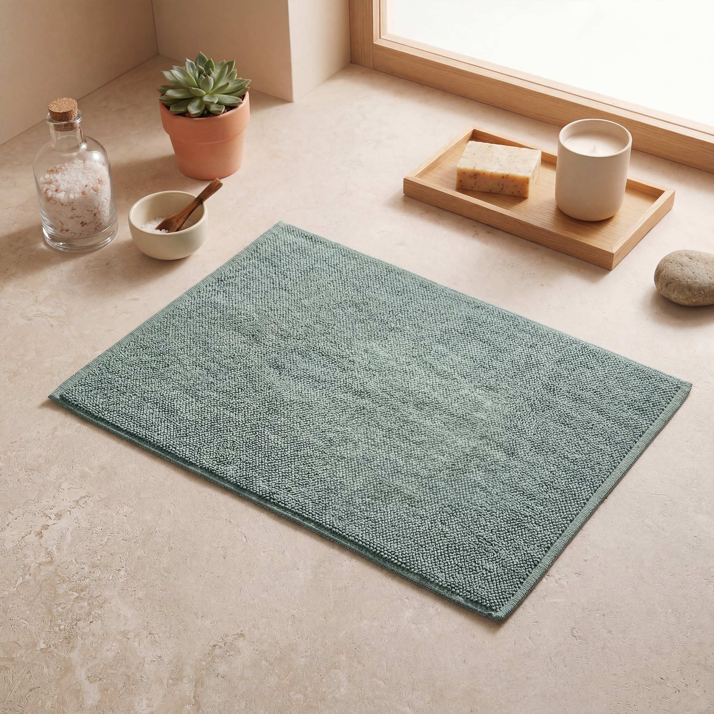 Su estructura permite una buena absorción de la humedad, ayudando a mantener el espacio seco y confortable tras la ducha o el baño.