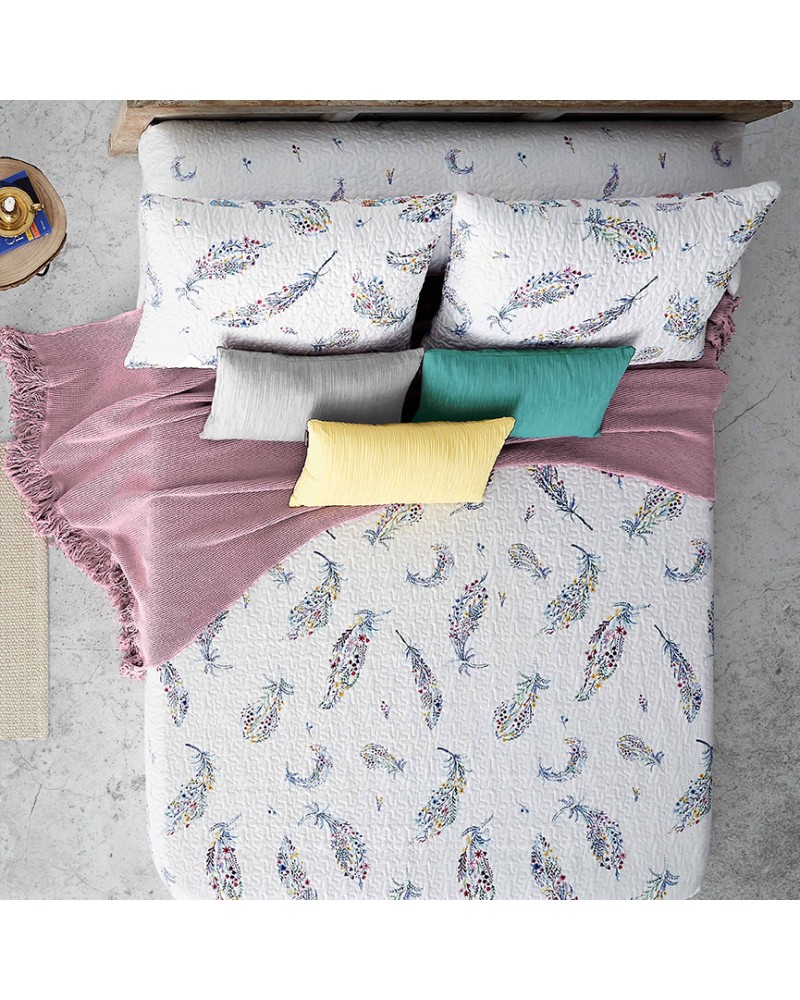 Colcha bouti reversible estampado plumas - Indi